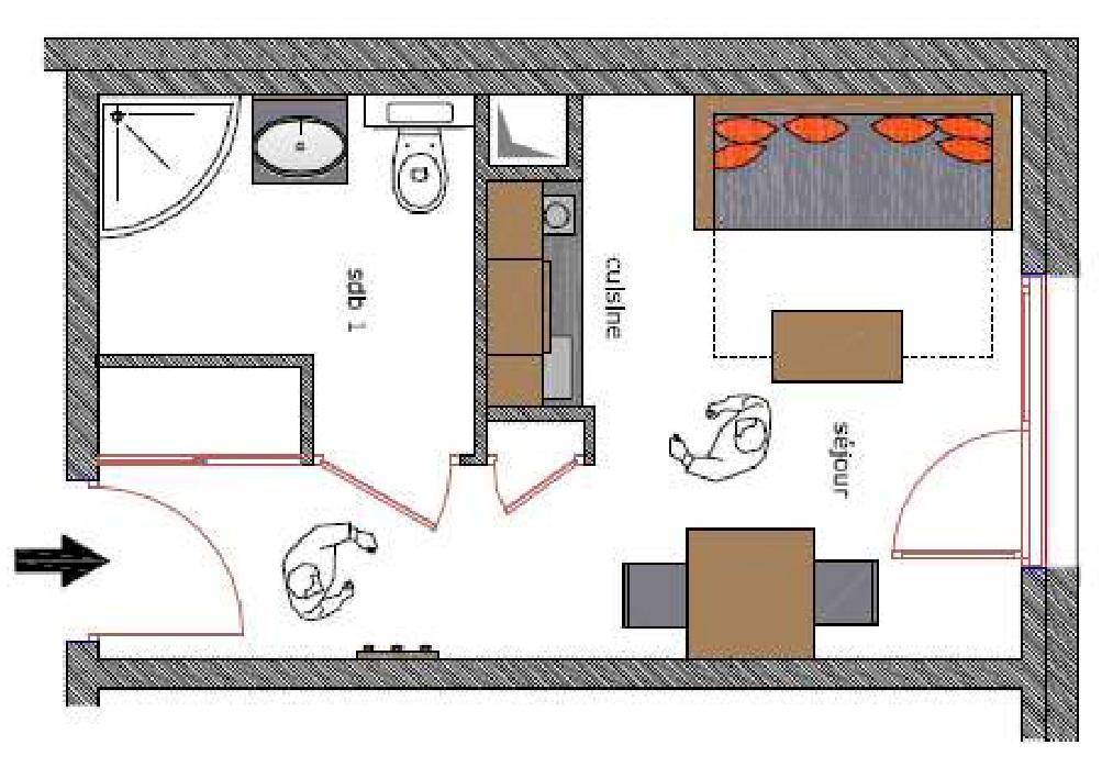 20 m² Studio ∙ 1 Schlafzimmer ∙ 2 Gäste
