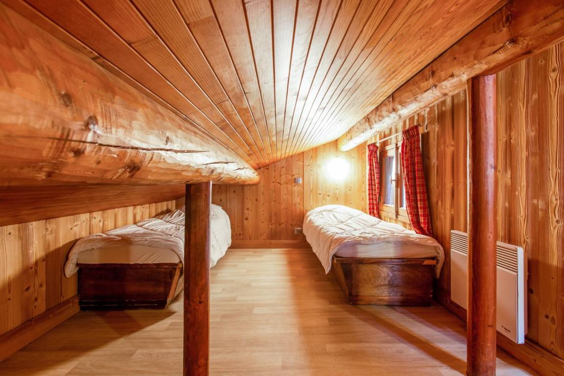 Individuelles Chalet auf 3 Ebenen. 1. Ebene: Eingangshalle mit Skiraum, Wohnküche mit offenem Kamin, WLAN-Anschluss, separates WC. Erdgeschoss: 3 Schlafzimmer (2 x 2 Einzelbetten 80 x 200 cm, die zu 1 Doppelbett 160 x 200 cm kombiniert werden können / 2 Einzelbetten), Duschbad (ebenerdige Dusche), Badezimmer (Badewanne), separates WC. 2. Ebene: ausgebauter Mansardendachboden mit Gesamthöhe unter 1,80 m: 23 m² (3 Einzelbetten). Balkon-Terrasse. Neigung. Garage für ein Auto. Ski La Rosière 1 km (kostenloser Shuttle nur im Winter).