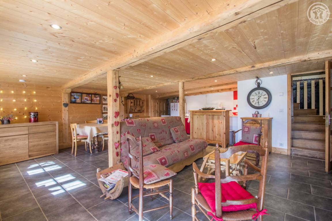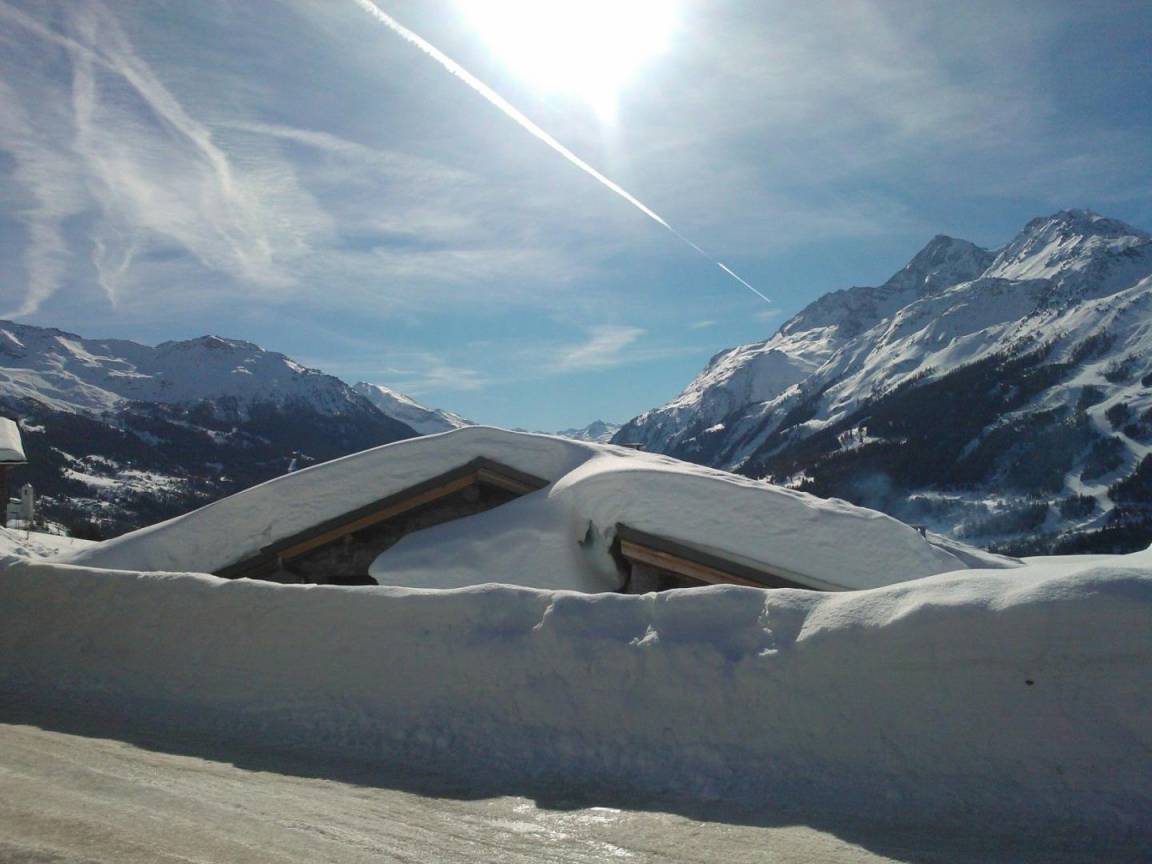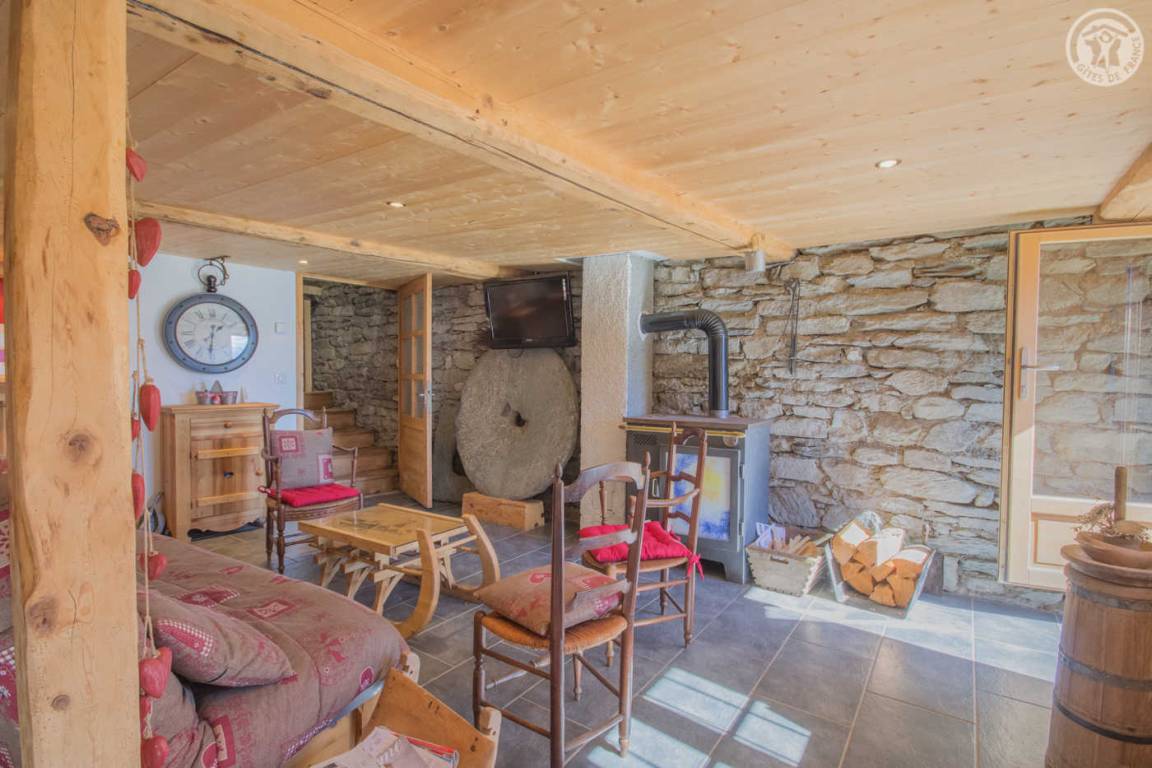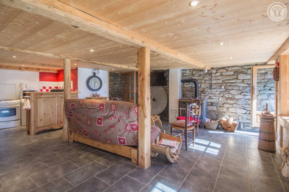Gîte im Ferienhaus der Eigentümer (angrenzend). Auf 3 Ebenen (Eingang zur Hütte im 2. Stock). Erdgeschoss: Wohnzimmer-Küche mit Sitzecke. 1. Stock: 2 Schlafzimmer (1 Doppelbett, 1 Einzelbett, 1 Holzbett / 1 Doppelbett, 2 Einzelstockbetten), ein Badezimmer (Dusche), separates WC. 2. Stock: Waschküche/Eingangshalle, überragt von einem schrägen Zwischengeschoss mit einer Gesamthöhe von weniger als 1,80 m (1 Matratze auf einem Sockel ohne Beine für 2 Personen). Grasterrasse und Land. Öffentlicher Parkplatz 20m entfernt. Gratis-Shuttle im Winter nach La Rosière (Abfahrt und Langlauf), Skigebiet Ste Foy (14 km), Tignes Brévière (18 km), Val d'Isère la Daille (25 km).