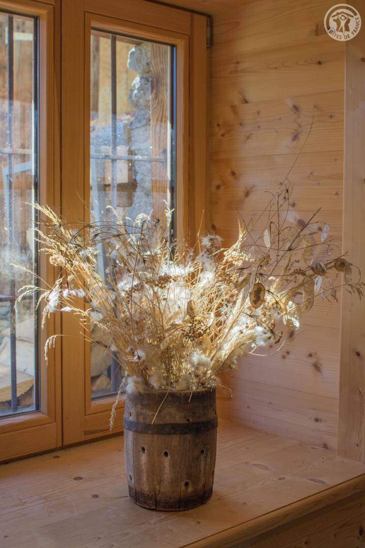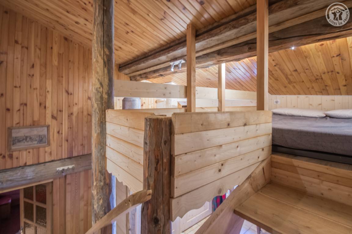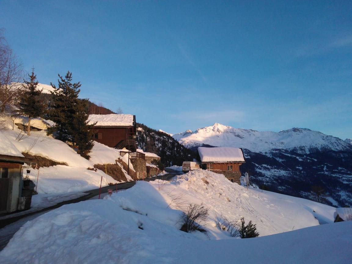 „Chalet situé dans un hameau perché. Calme, petite terrasse herbeuse avec vue sur les montagnes environnantes. Équipement et confort satisfaisants.“