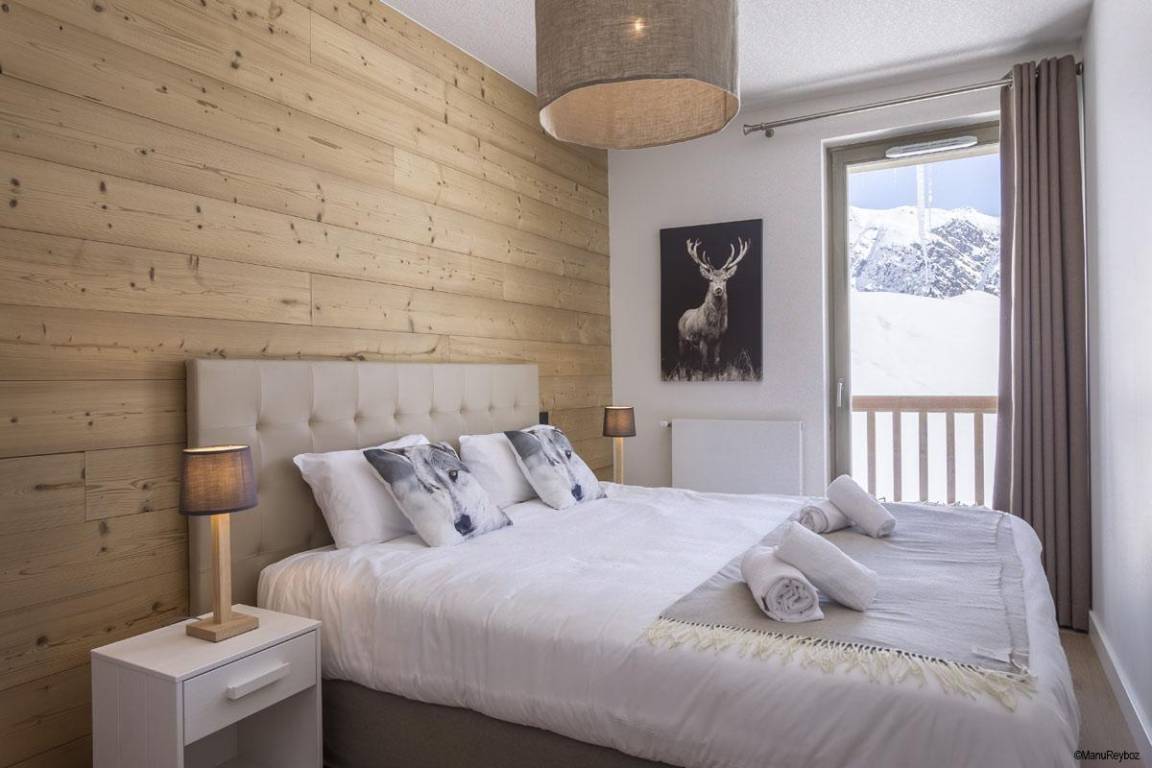 Die Residenz Le Hameau de Barthélémy befindet sich im Ferienort La Rosière. Ihre außergewöhnliche Lage garantiert einen herrlichen sonnigen Blick auf die grünen Berge. Die Geschäfte und das Zentrum des Ferienorts liegen 350 m von der Residenz entfernt. Der Bergstil und die hochwertigen Dienstleistungen werden Ihnen einen magischen und erholsamen Aufenthalt bescheren. Sie können im SPA entspannen und sich von einer Pflege verführen lassen ... Sie werden einen angenehmen Urlaub in dieser hochklassigen Residenz verbringen. Fläche von ungefähr 66-69 m². Wohnzimmer mit Klappschlafcouch. Schlafzimmer mit Doppelbett (180*200). Schlafzimmer mit 2 Einzelbetten (90*200). offener Schlafbereich mit 2 Stockbetten (90*200). Küche mit Wasserkocher, Kaffeemaschine, Backofen, Toaster, Geschirrspülmaschine, Mikrowellenherd, 2 Glaskeramikkochfelder, Kühlschrank. Badezimmer mit Handtuchtrockner, WC. Waschräume mit Handtuchtrockner. separates WC. Waschräume. Balkon. Die oberen Betten sind nicht für Kinder unter 6 Jahren geeignet.