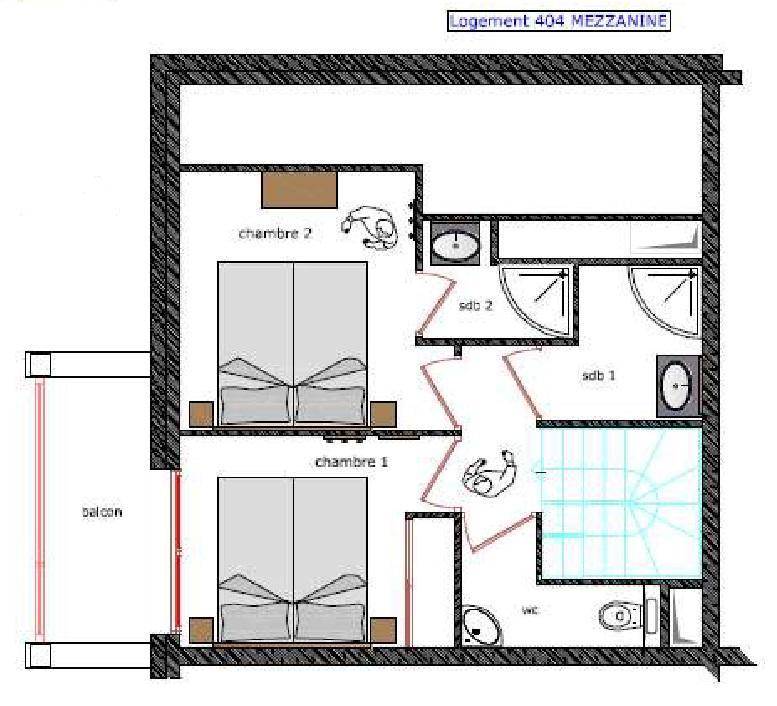 Fläche von ungefähr 62 m². 4te Etage. Blick skipisten. Niveau 0 : Wohnzimmer mit Balkon, Ausziehschlafcouch für 2 Personen (80x200). offener Schlafbereich mit 2 Stockbetten (90x200). Kochnische mit Backofen, Geschirrspülmaschine, Mikrowellenherd, 2 Glaskeramikkochfelder, Kühlschrank. separates WC. Niveau 1 : Schlafzimmer mit Dusche, 2 zwei Einzelbetten (90x200), Waschraum. Schlafzimmer mit 2 zwei Einzelbetten (90x200). Waschräume mit Dusche. separates WC. Die oberen Betten sind nicht für Kinder unter 6 Jahren geeignet.