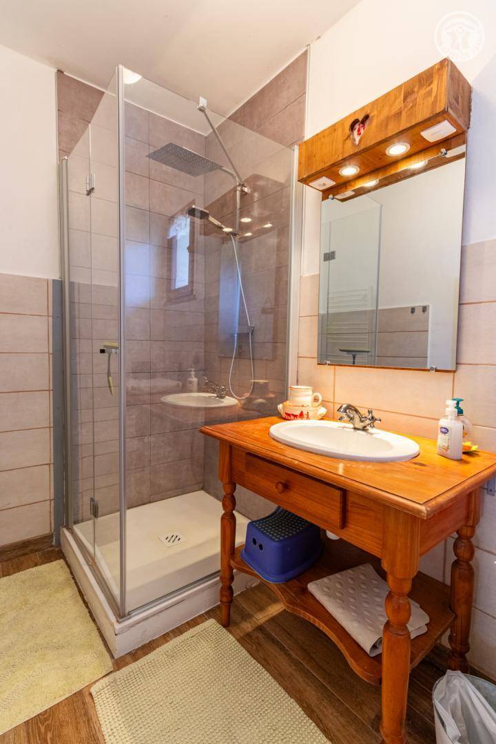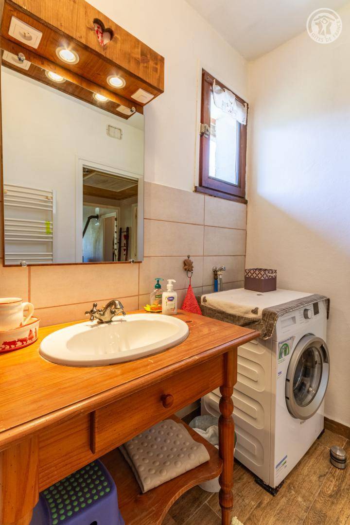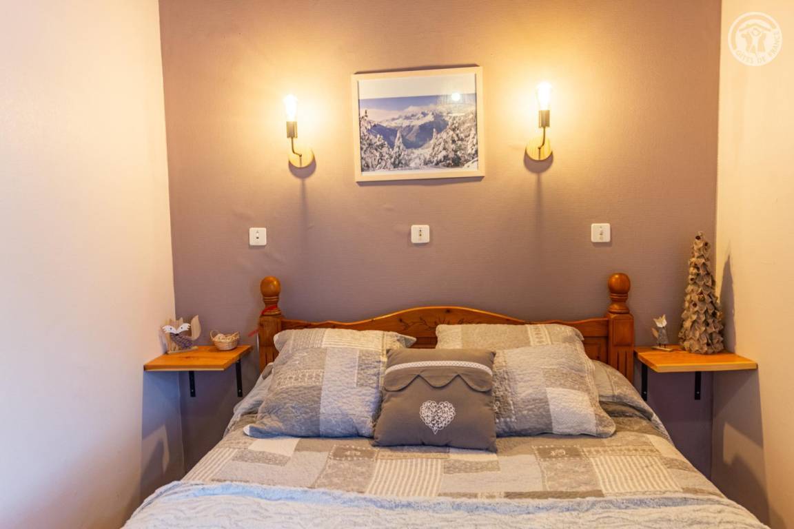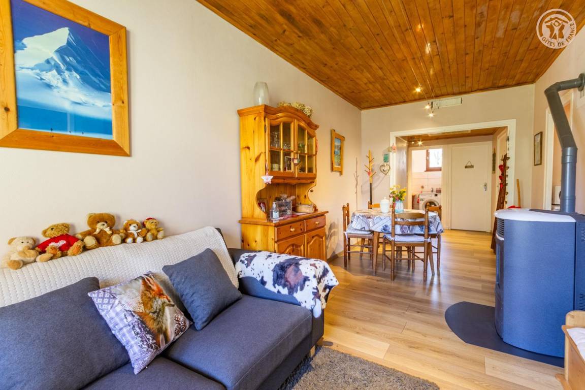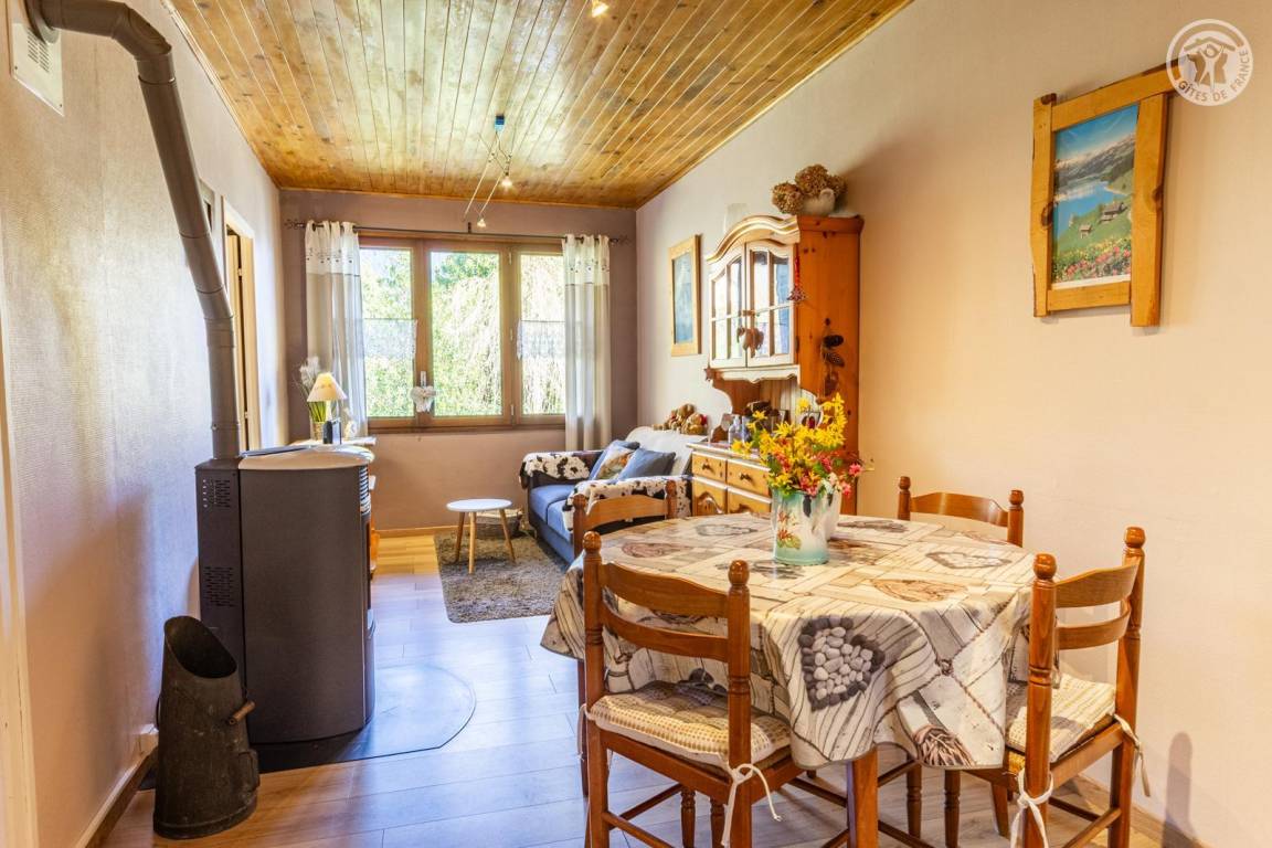 2 Gîtes im Haus auch mit Familienunterkünften. 1. Stock: Wohnzimmer mit Pelletofen, Küche, 2 Schlafzimmer (1 Doppelbett / 2 Einzelbetten), Duschbad (Multi-Jet-Dusche), separates WC. Terrasse. Hof und Land. Betreutes Schwimmen in Villargondran 15 km entfernt. Schwimmbad St. Jean de Maurienne 11 km.