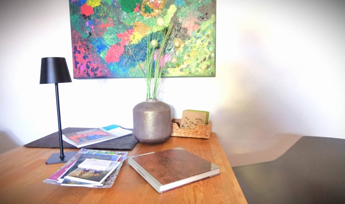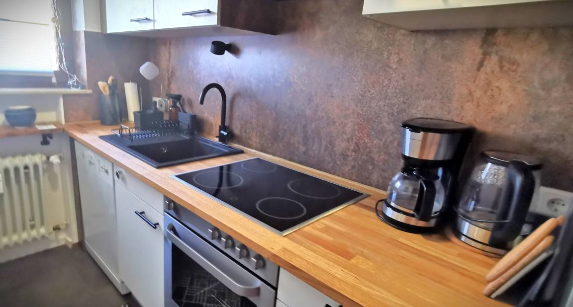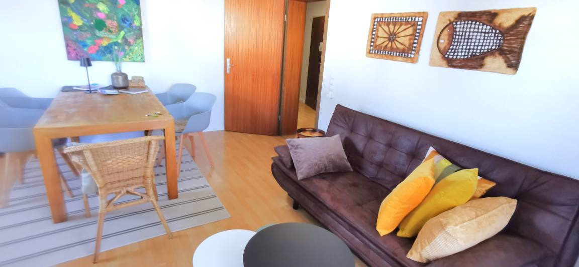 Die Zwei-Zimmerwohnung im Hochparterre bietet alles für einen entspannten Urlaub für zwei Personen in ruhiger Wohnlage. Liebevoll eingerichtet erwartet Sie ein Wohnzimmer mit Sitz- und Essecke sowie Ausgang zum Süden ausgerichteter Balkon, auf dem Sie am Abend Ihren erlebnisreichen Urlaubstag ausklingen lassen können. In der separaten Küche mit Backofen, Herd, Kühlschrank und Spülmaschine, können Sie Ihr Frühstück oder die vielen regionalen Produkte zubereiten.