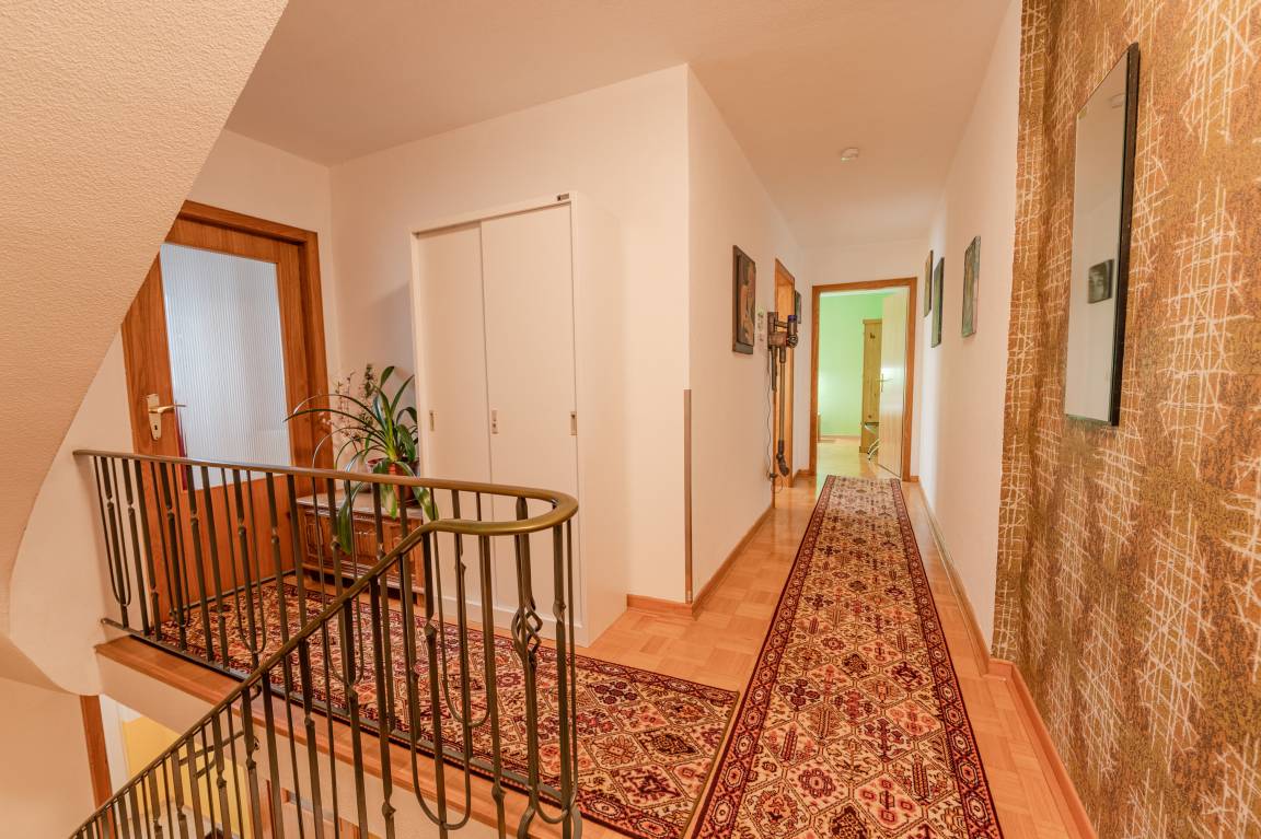 Ein Kaminofen im Esszimmer, freies WiFi im ganzen Haus und Fernsehgeräte in Ess- und Wohnzimmer vervollständigen das Angebot. Ihr Fahrzeug können Sie in der Garage mit direktem Zugang zur Wohnung parken. Ein weiterer Parkplatz steht auf dem Hof zur Verfügung.