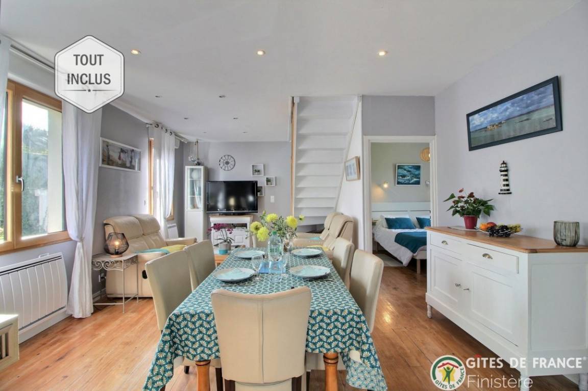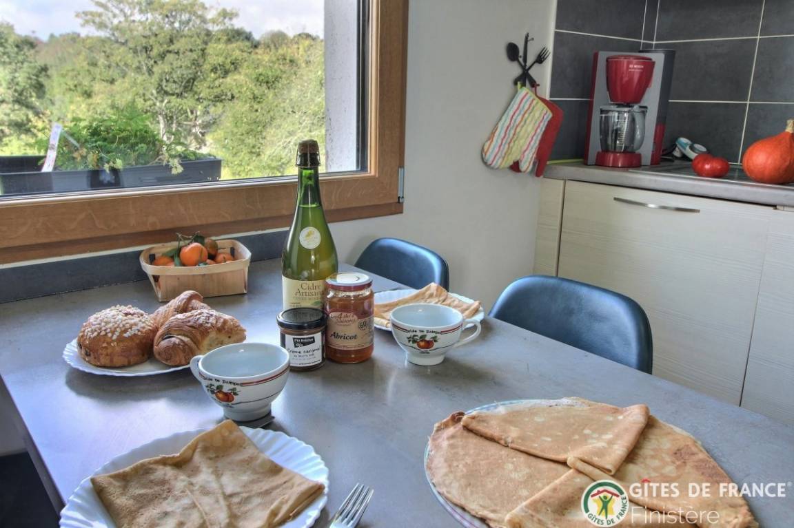 „Nous avons passé un excellent séjour Le gîte est très bien équipé, confort, excellente literie, très lumineux, joliment décoré avec soin et beaucoup de goût..On s y sent comme à la maison !Marie Hélène la propriétaire nous a accueilli avec une très grande gentillesse et de sympathiques attentions( bonnes crêpes de Bretagne et son cidre) Merci encore et on reviendra dès que l on pourra avec nos petites fillesJacqueline et Daniel“