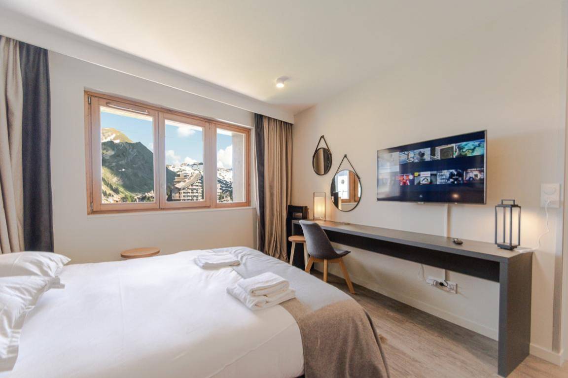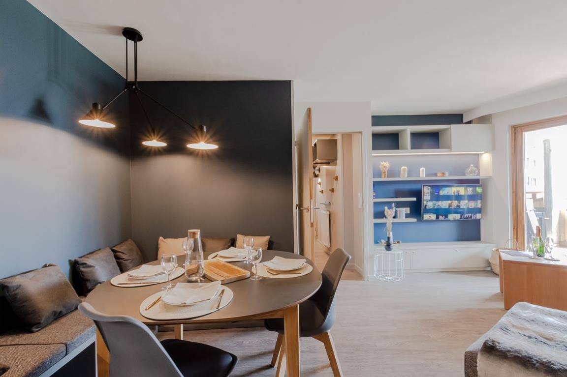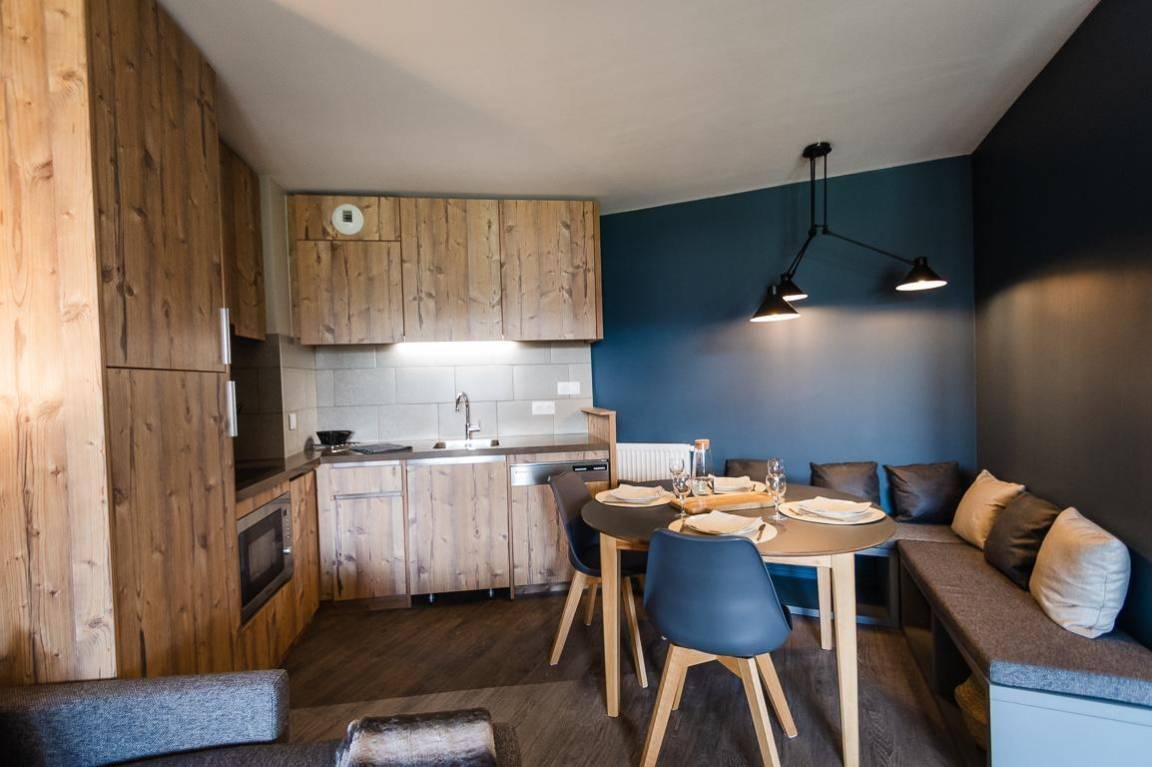 Die Residenz Arietis besteht aus sehr angenehmen und geräumigen Apartments. Sie liegt nur einen Steinwurf vom ESF-Treffen und den Pistenrestaurants sowie 5 Minuten vom Zentrum des Resorts entfernt. Fläche von ungefähr 56 m². 1te Etage. Orientierung : Süd. Wohnzimmer mit Klappschlafcouch. Schlafzimmer mit Doppelbett, Waschraum, WC. Schlafzimmer mit 2 Stockbetten, Ausziehbett. Kochnische mit Wasserkocher, Kaffeemaschine, Toaster, Geschirrspülmaschine, Mikrowellenherd, 2 Glaskeramikkochfelder. Badezimmer. separates WC. Waschmaschine, wifi. Die oberen Betten sind nicht für Kinder unter 6 Jahren geeignet.