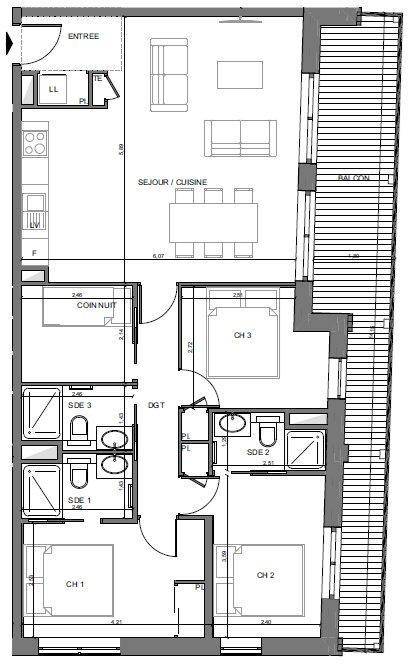 Fläche von ungefähr 84 m². 2te Etage. Orientierung : Süd-Ost. Blick dorf. Wohnzimmer mit TV. 2 Schlafzimmer mit 2 Einzelbetten (80*200), , WC. Schlafzimmer mit Doppelbett (160*200), , WC. offener Schlafbereich mit 2 Stockbetten. Küche mit Kaffeemaschine, Bügeleisen, Backofen, Waschmaschine, Geschirrspülmaschine, Mikrowellenherd, 2 Induktionsherdplatten. Waschräume mit WC. Terrasse. Die oberen Betten sind nicht für Kinder unter 6 Jahren geeignet.