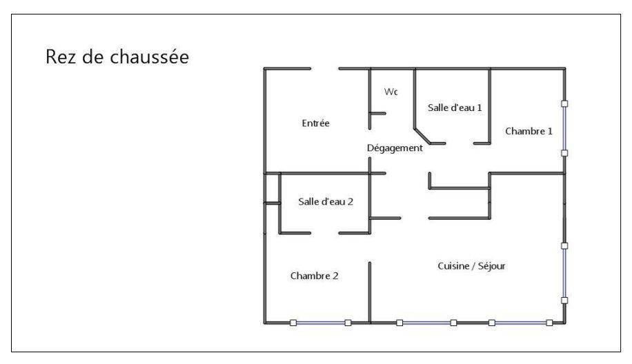 Fläche von ungefähr 79 m². Erdgeschoss. Orientierung : Süd. Wohnzimmer. Schlafzimmer mit Doppelbett (160*200), Waschraum. Schlafzimmer mit Doppelbett (160*200), 2 Stockbetten, Waschraum. Kochnische mit Gefrierschrank, Backofen, Geschirrspülmaschine, Mikrowellenherd, Kühlschrank. separates WC. Die oberen Betten sind nicht für Kinder unter 6 Jahren geeignet.