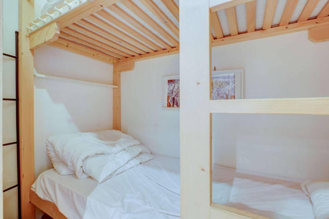 Fläche von ungefähr 35 m². 3te Etage. Orientierung : Ost. Diele. Wohnzimmer mit , TV. Schlafzimmer mit Doppelbett. offener Schlafbereich mit 2 Stockbetten. mit Kaffeemaschine (nespresso), Bügeleisen, Backofen, Geschirrspülmaschine, Mikrowellenherd, 2 Induktionsherdplatten, Kühl-Gefrier-Kombination. Badezimmer mit Waschmaschine, WC. Balkon. Die oberen Betten sind nicht für Kinder unter 6 Jahren geeignet.