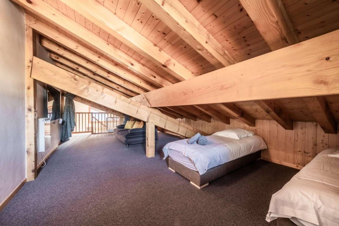Fläche von ungefähr 107 m². 1te Etage. Orientierung : Ost, Süd. Wohnzimmer. 2 Schlafzimmer mit Doppelbett, Waschraum. Schlafzimmer mit 2 Einzelbetten. Schlafzimmer mit 2 Einzelbetten, Waschraum. Zwischengeschoss mit 2 Einzelbetten. offene Küche mit Kaffeemaschine, Backofen, Geschirrspülmaschine, Mikrowellenherd, 2 elektronische Herdplatten, Kühl-Gefrier-Kombination. separates WC. Badezimmer mit Badewanne, Waschmaschine, Haartrockner. Terrasse.