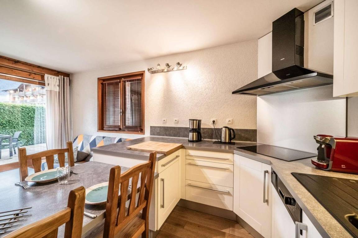 Die Residenz Fleur de Sel ist ein kleines Haus im Herzen von Morzine, das in mehrere Apartments unterteilt ist. Dank der idealen Lage nahe dem Ortszentrum erreichen Sie Skifahren, Après-Ski-Aktivitäten und Einkaufsmöglichkeiten bequem, ohne während Ihres Aufenthalts Ihr Auto zu benötigen. Fläche von ungefähr 50 m². Erdgeschoss. Orientierung : Süd-Ost. Wohnzimmer mit Klappschlafcouch. Schlafzimmer mit Doppelbett (180). Schlafzimmer mit 2 Einzelbetten (90). Kochnische mit Backofen, Geschirrspülmaschine, Mikrowellenherd, Kochplatte, Kühl-Gefrier-Kombination. Badezimmer. separates WC. Terrasse-Garden.