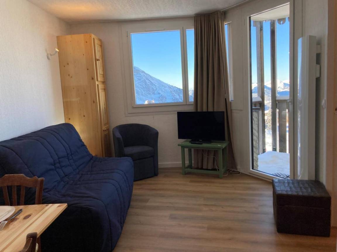 Fläche von ungefähr 28 m². 5te Etage. Orientierung : Süd. Blick station und Berg. Wohnzimmer mit BZ-Sofas (140*190). Schlafzimmer mit 2 Stockbetten (90*185). Kochnische mit Wasserkocher, Kaffeemaschine, Toaster, Geschirrspülmaschine, Mikrowellenherd, 2 Glaskeramikkochfelder. Badezimmer. separates WC. Balkon. Die oberen Betten sind nicht für Kinder unter 6 Jahren geeignet.