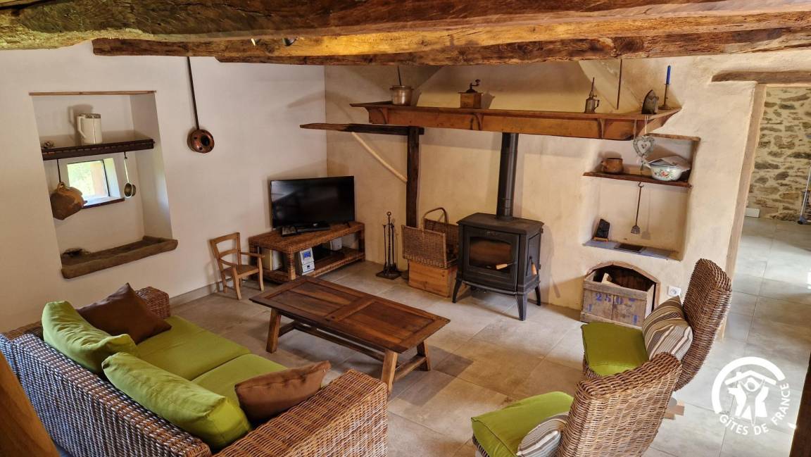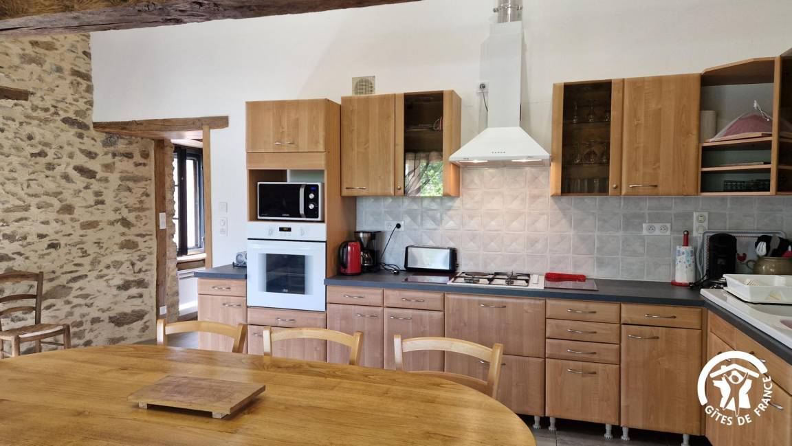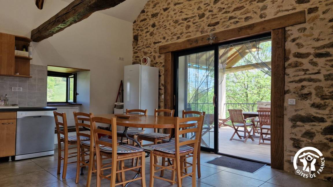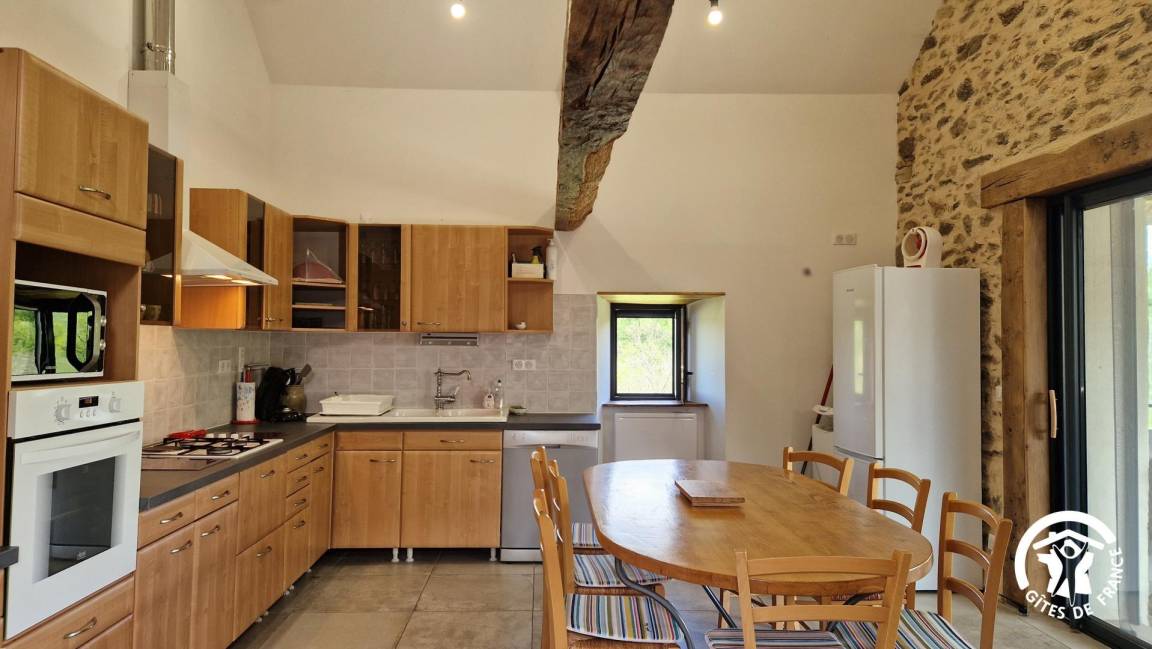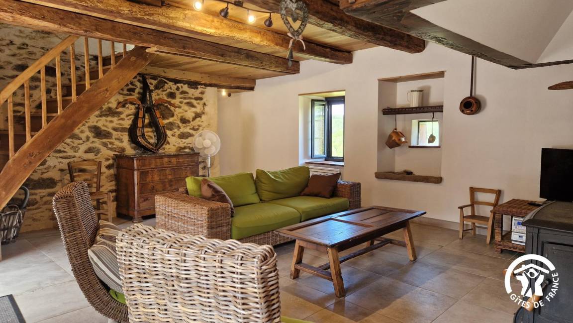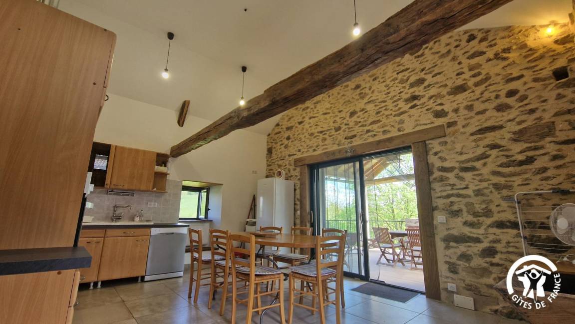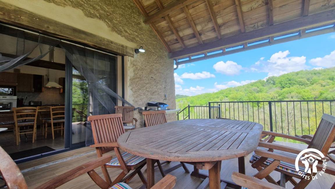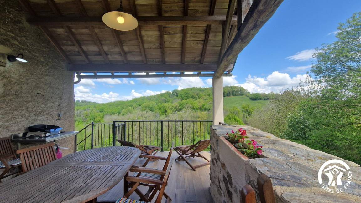 „Gîte de caractère rénové avec beaucoup de soin. Extrêmement bien équipé, on ne manque de rien. Terrasse couverte avec plancha et vue sur la forêt vallonée, pas une maison en vue, poêle à bois avec bûches à disposition. Bien placé à la jonction du Tarn et de l'Aveyron.“