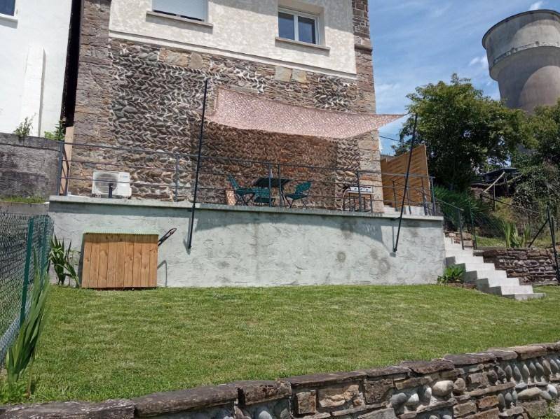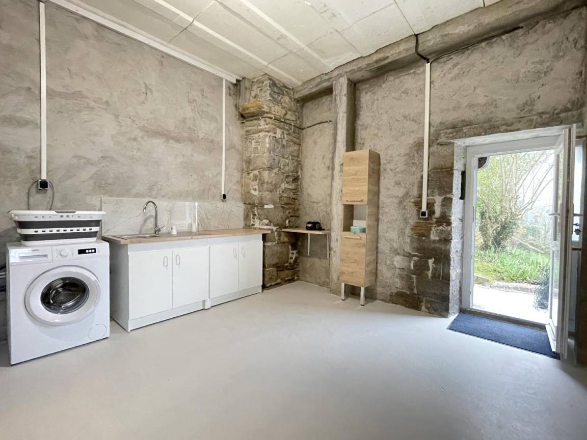 -Waschküche (Waschmaschine) mit Zugang zum kleinen, in Terrassen umgewandelten und gesicherten Hanggrundstück