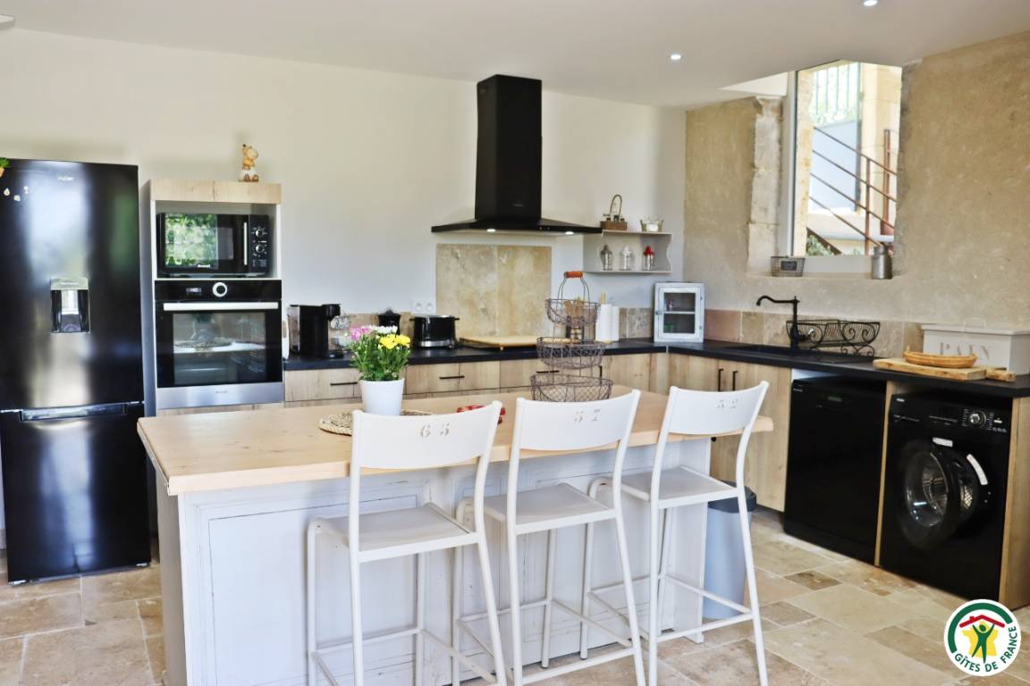 „Nous avons loué ce gîte pour un week-end entre amis. Il est vraiment superbe. Tout est pensé avec goût. Il ne manque rien pour notre confort, vaisselle, électroménager, draps, serviettes de toilette,....Myriam nous a accueilli avec sourire et gentillesse. Elle nous a offert un jus d'abricot de leur production ainsi qu'une brioche régionale. Nous n'avons pas pu beaucoup profiter de l'extérieur car la météo ne l'a pas permis mais nous avons quand même utilisé le terrain de pétanque et le baby-foot. Il y a une très belle piscine pour les beaux jours ainsi que plusieurs salons extérieurs pour profiter du soleil ou de l'ombre en été. C'est une adresse à retenir et nous reviendrons certainement. Bonne continuation“