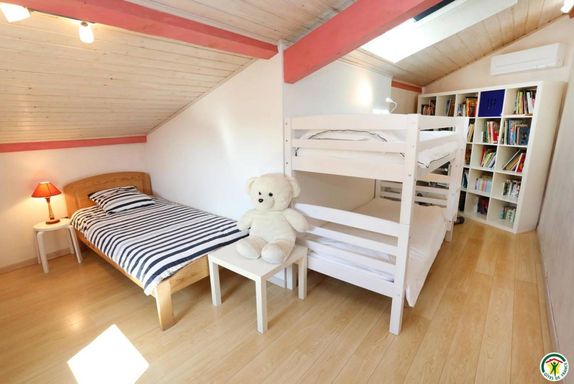 Im Erdgeschoss: geräumiges Wohnzimmer bestehend aus der zum Wohnzimmer offenen Küche und dem Wohnzimmer (Pelletofen), ein zweites, gemütlicheres Wohnzimmer mit Bibliothek, DVD-Player, Heimkino, 3 Schlafzimmer mit 2x Klimaanlage ( 160x200) ( 140x190, 2x90x190 inklusive 1 Etagenbett), 1 Badezimmer mit Dusche und Badewanne, 2 separate Toiletten, 1 Waschküche. Obergeschoss: 3 Schlafzimmer (160x200) (140x190) (3x90x190 inklusive 1 Etagenbett), 1 Badezimmer mit WC. Das Haus ist hell und öffnet sich weit auf die Terrasse, die mit einem hübsch angelegten Garten geschmückt ist. Ihnen stehen ein Swimmingpool (12x6m) und ein Spa zur alleinigen Nutzung zur Verfügung, beide geöffnet von April bis Oktober. Ein Gartenbereich mit Spielen für Kinder, Tischfußball und einer Tischtennisplatte stehen Ihnen zur Verfügung, ebenso wie die Sommerküche mit Grill und Plancha am Swimmingpool.