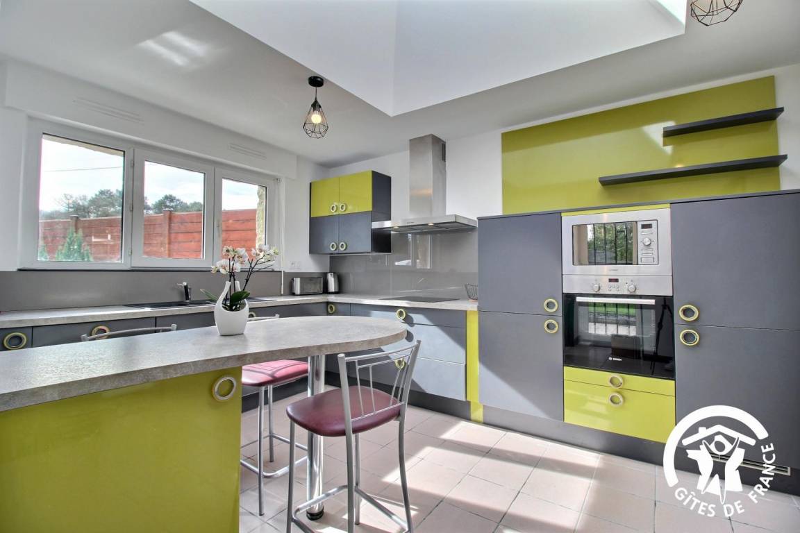 „Très beau gîte, tout confort. Très belle pièce à vivre avec grande baie vitrée donnant sur le jardin. Entièrement clôturée, local vélo fermant à clé. L'endroit est très calme, un peu perdu dans la nature...GPS indispensable. Merci aux propriétaires pour leur accueil et leurs explications sur les curiosités à ne pas manquer...Petit inconvénient: Un peu éloigné de la côte (environ 1h de route pour quiberon par exemple).Nous recommandons“