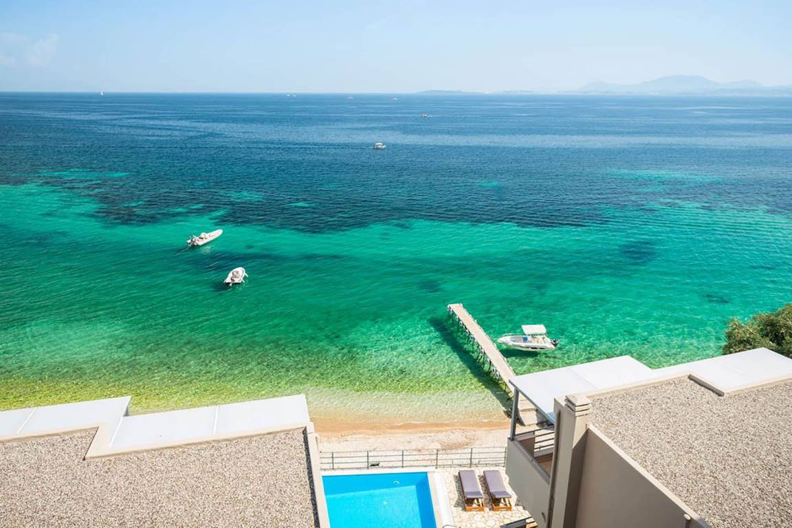 Die Villa verfügt über eine Gesamtfläche von nicht näher spezifizierten Quadratmetern, verteilt auf mehrere Ebenen, und bietet Platz für bis zu 8 Gäste. Die Unterkunft umfasst 4 Schlafzimmer und 4 Badezimmer. Die Innenräume sind so angeordnet, dass natürliches Licht maximiert wird und Meerblick von mehreren Positionen aus genossen werden kann.