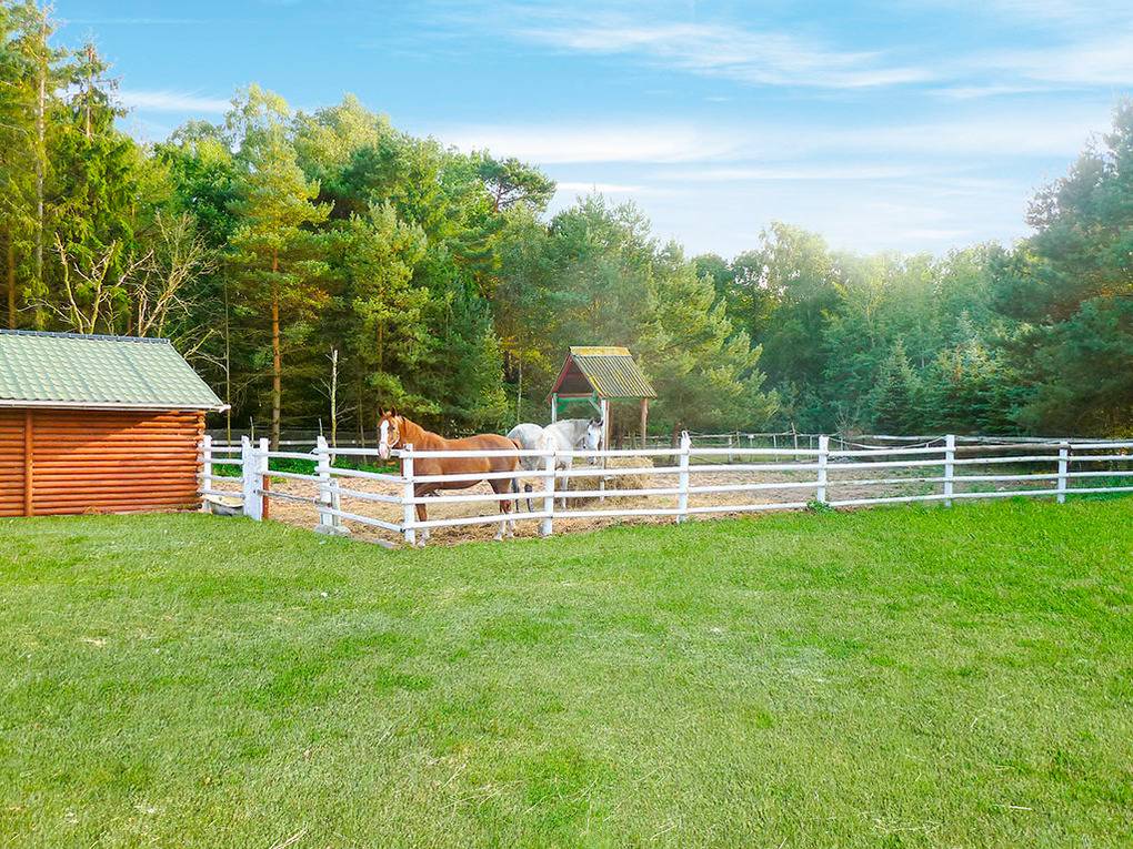 In der Anlage: Rezeption. Swimmingpool. Fahrradverleih (Gebühr, nur nach Verfügbarkeit). Kinderspielplatz mit Sandkasten, Rutsche, Schaukel, Volleyballplatz. Geräumiges Freizeit-Holzhaus zur gemeinschaftlichen Nutzung mit Billard-, Kickertisch, Tischtennis, TV, Küche. Kleiner Stall mit Pferden, organisierte Kutschfahrten (Juni-August, Gebühr). Kleiner Angelteich für Kinder. Wanderwege durch den unmittelbar angrenzenden Wald. Angelmöglichkeiten am Fluß Rega und dem Altarm.