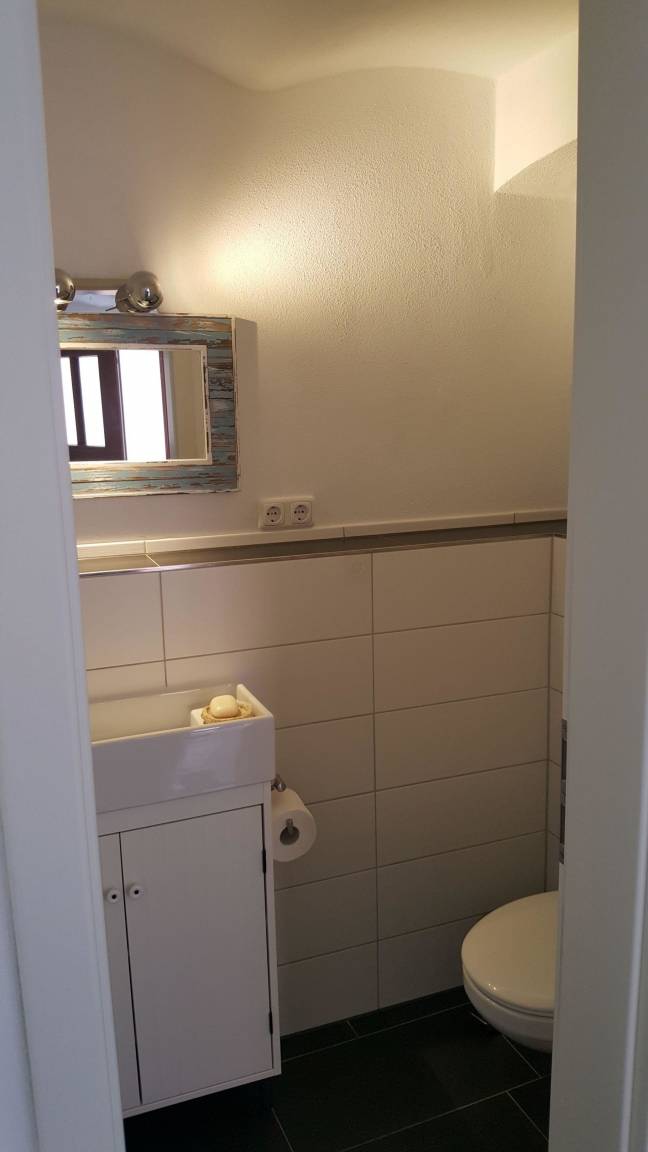 Ein großes Doppelbett mit 1,80 Breite befindet sich im Schlafzimmer, mit direkt anschließendem Duschbad mit WC. Ein separates Gäste WC ist vorhanden. Die Wohnküche ist voll ausgestattet. Ein Kinderbett und ein Hochstuhl kann bei Bedarf zur Verfügung gestellt werden. Die Wohnung besitzt Fußbodenheizung.