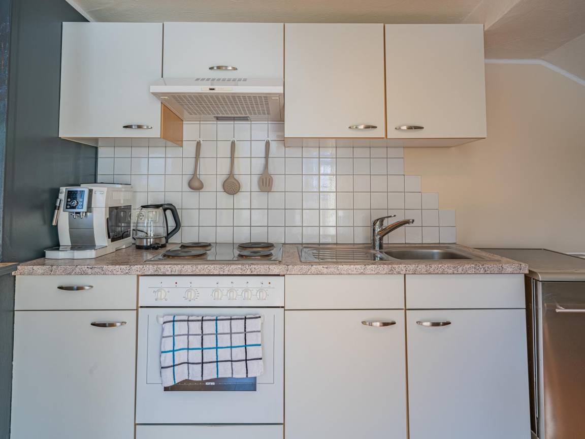 In der 2. Etage: offene Küche mit Wasserkocher, Kochherd, Kaffeemaschine(Vollautomat), Backofen, Kühl-/Gefrierkombination, Waschmaschine , Wohn/Esszimmer mit Schlafcouch 1 Pers., TV, Esstisch, Sitzecke , Schlafzimmer mit Doppelbett(180 x 200 cm), TV , Schlafnische mit Doppelbett(140 x 200 cm) , Badezimmer mit Waschbecken, Dusche , Toilette mit Waschbecken , Balkon