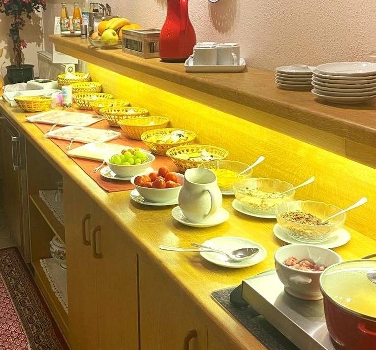 Dreibettzimmer in familiengeführter Pension, Frühstücksbüffet