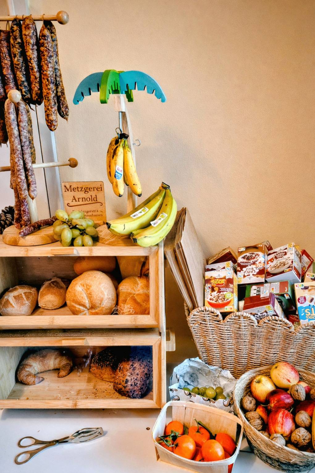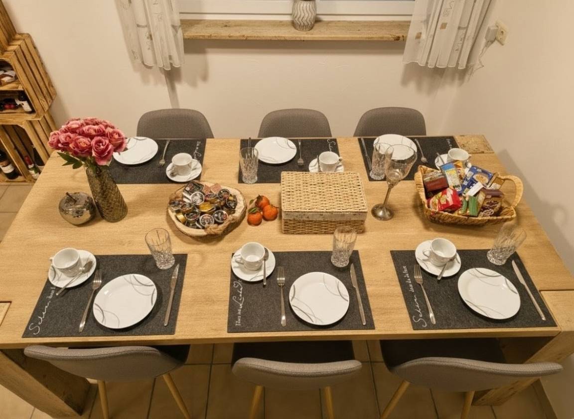Wurst, Käse, Marmelade, Butter, Honig, Müsli, Milch, Kaffee, Tee, Eier, Brötchen, Säfte, Kaba, Joghurt, uvm...!