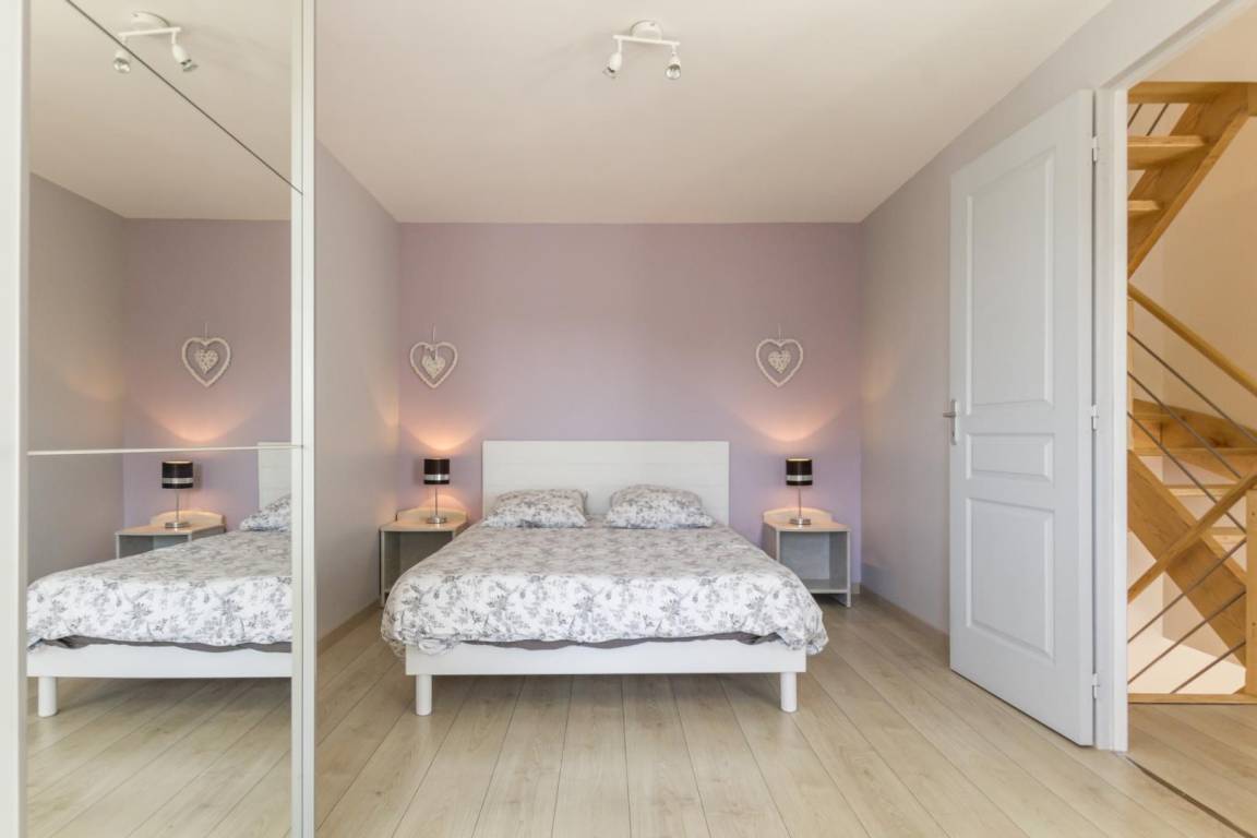 Freistehendes Haus. Erdgeschoss: Wohnzimmer (TV, ADSL-Internet, Radio/CD-Player). Küche (Induktionskochfeld, Mikrowelle, Backofen, Espressomaschine, Geschirrspüler, Kühlschrank). Waschküche mit WC (Waschmaschine). Erster Stock: Schlafzimmer 1 (ein Doppelbett 140x190 cm und ein Einzelbett 90x190 cm). Schlafzimmer 2 (Doppelbett 140x190 cm). Duschbad mit WC (Waschbecken, Duschkabine, Handtuchwärmer). Zweiter Stock: Schlafzimmer 3 (Doppelbett 140x190 cm). Schlafzimmer 4 (zwei Einzelbetten 90x190 cm), jeweils mit eigenem Duschbad und WC. Privater, nicht eingezäunter Garten. Terrasse. Gartenmöbel. Sonnenliegen. Grill. Geschützter Teich auf dem Gelände. Gemeinsame Schaukel und Sandkasten. Parkplatz. Elektrische Heizung (gegen Gebühr). Bettwäsche kann gemietet werden. Reinigungsservice auf Anfrage. Babyausstattung vorhanden. Ein weiteres Ferienhaus (für 4 Personen) befindet sich 80 m entfernt – G78. Feierliche Zusammenkünfte sind nicht gestattet.