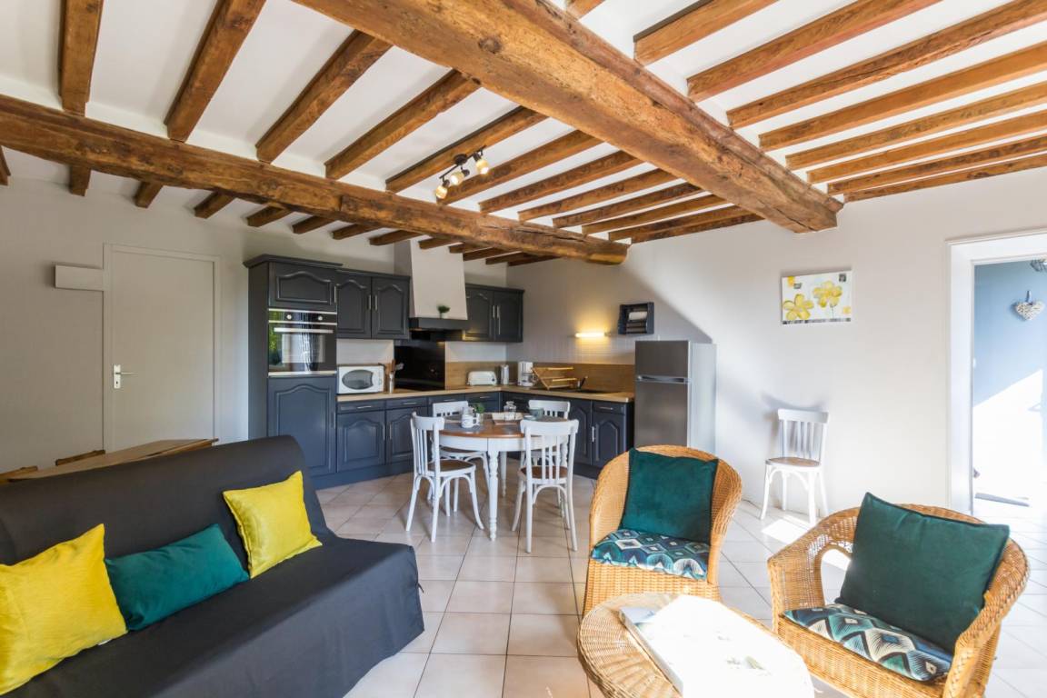 „We stayed for a week in the well-equipped gite for 4 people. The gite is located on a beautiful and well-tended farm. The surroundings are beautiful and close to the beach. The house is fully equipped and the garden is very nice. Especially the 3 goats that you can feed every day are a nice addition to this stay.“