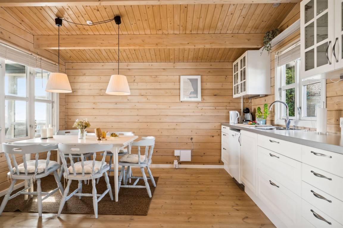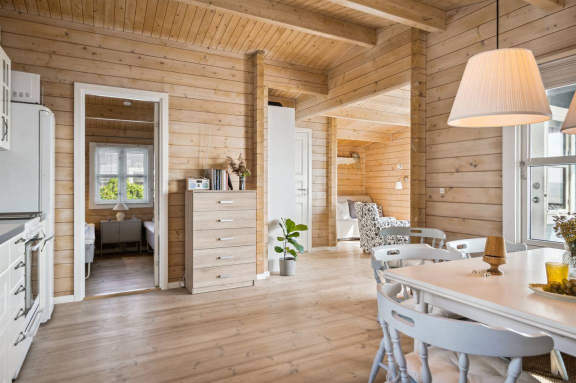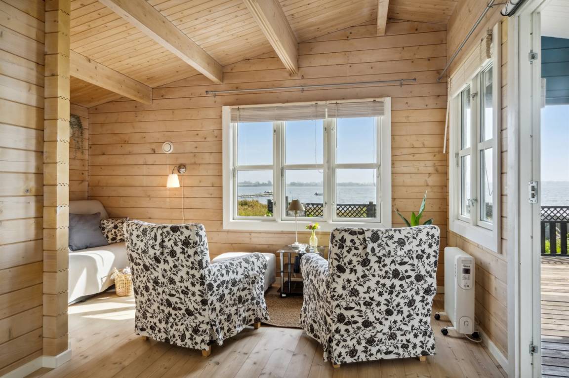 Sehr charmante, neuere Blockhütte mit einer ungestörten Lage am Rande eines grünen Gebiets und direkt am Wasser. Von der schönen Terrasse aus kannst du die Morgensonne genießen, und da ein Teil davon überdacht ist, lädt sie auch abends zum gemütlichen Verweilen ein. Genieße den Blick über Kertinge Nor und Kerteminde Fjord. Vergiss nicht, ein Fernglas mitzubringen, da es in der Umgebung eine reiche Vogelwelt gibt! Nur 20 Meter vom Haus entfernt befindet sich das Wasser und der gemeinsame Badesteg.