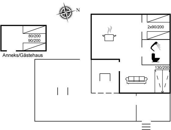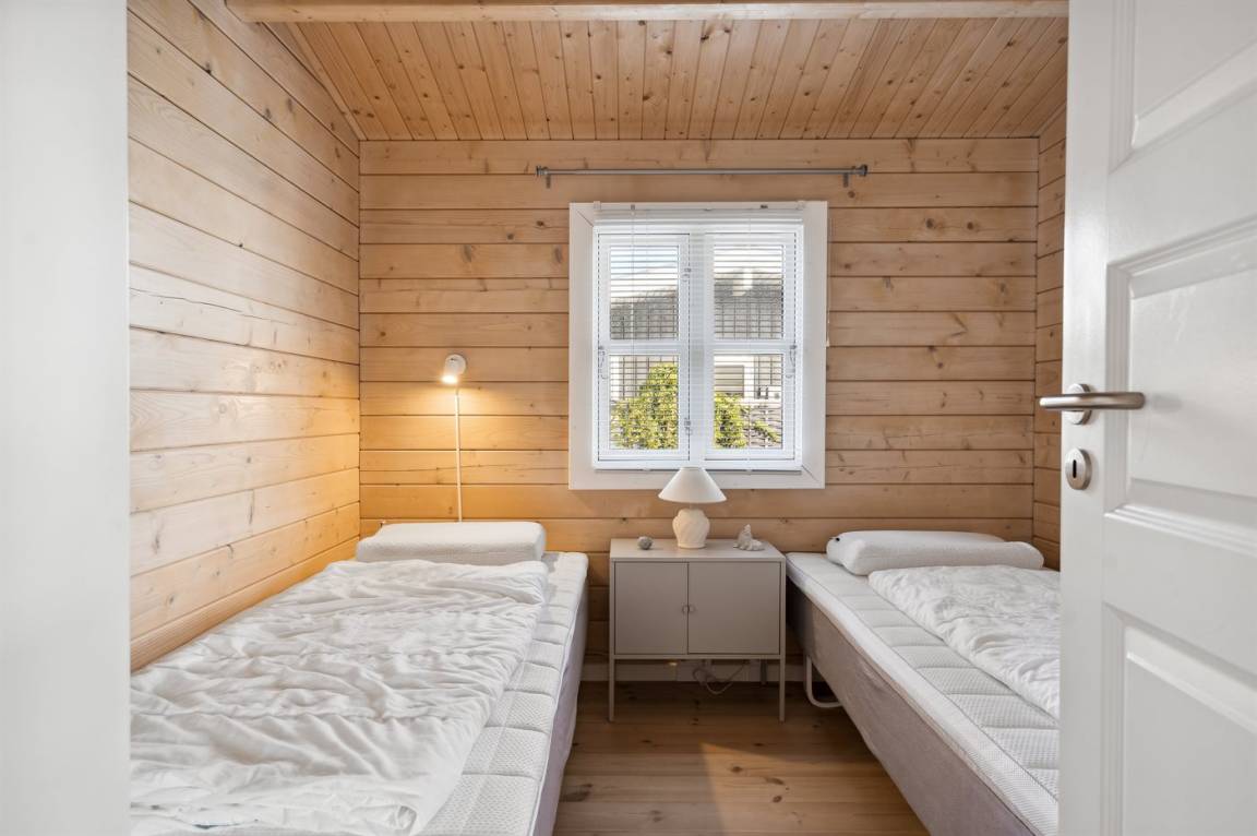 Die Schlafplätze verteilen sich auf 2 Schlafzimmer mit je 2 Einzelbetten. Das eine Schlafzimmer befindet sich im Gästehaus. Darüber hinaus gibt es 2 Schlafplätze auf einer Doppelschlafcouch im Wohnzimmer.