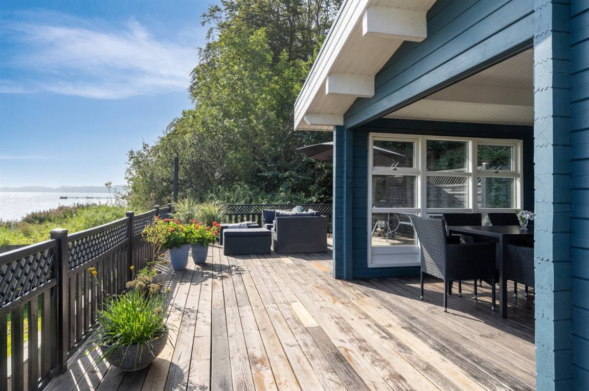 Die Ferienunterkunft liegt auf einem 175 m² großen Naturgrundstück. Die Entfernung zum Meer beträgt 7000 m. Die Entfernung zum Fjord beträgt 20 m. Es gibt einen Badesteg in der Nähe. Die nächste Einkaufsmöglichkeit liegt 550 m entfernt. In einem Abstand von 5000 m gibt es einen Golfplatz. Es steht ein offenes Terrassenareal zur Verfügung. Außerdem gibt es überdachte Terrasse. Die Entfernung zu einem Spielplatz beträgt 150 m. Es steht ein Grill zur Verfügung.