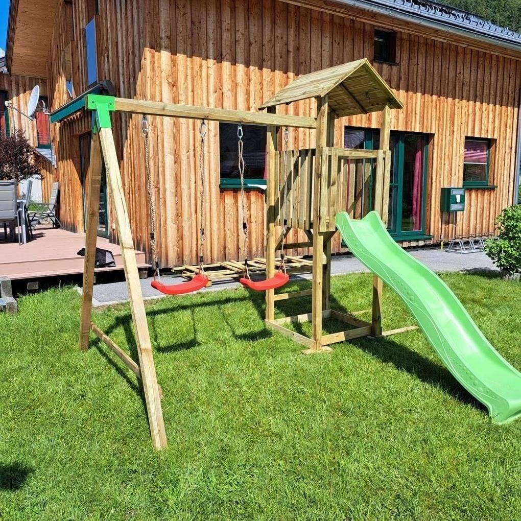 Das Chalet, 2017 erbaut, verfügt über alles, was Urlaubsgäste als Selbstversorger benötigen. Im Erdgeschoß befindet sich im Eingangsbereich ein Schischuhwärmer, eine Waschmaschine, Haushaltsgeräte, eine Ablage sowie ein Bad mit Dusche und WC. Das geräumige Wohnzimmer bietet eine gemütliche Couchecke mit TV und einen Esstisch für 8 Personen sowie einen Multifunktionstisch: Billard, Tischfußball, Black Gamon. Daneben bietet die Küche alles, was man benötigt: Vom Herd, Kühlschrank mit Gefrierfach, Spülmaschine, Toaster, Wasserkocher, Kaffeemaschine (Filter und Kapsel: Tschibo), Backrohr, Mikrowelle sowie Geschirr für mindestens acht Personen.