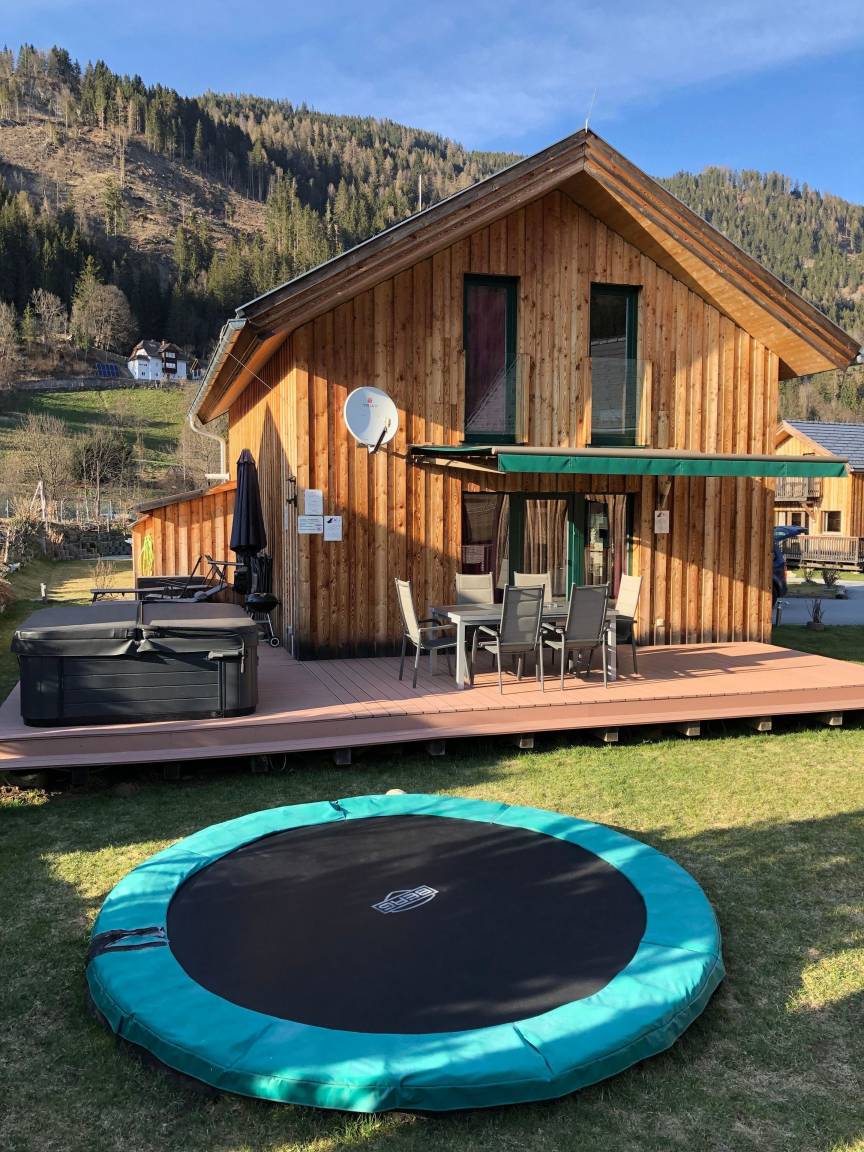 Ein Bodentrampolin im Garten macht nicht nur Kindern und Jugendlichen Spaß. zwei Schaukeln, ein Spielturm mit Rutsche erfreut die kleineren Kinder. Die Terrasse mit Tisch, Sesseln und Sonnenliegen ladet zum gemütlichen Abendessen bzw. Sonnenbaden oder Lesen unter Tags ein. Autos (3-4) können direkt vor dem Haus geparkt werden. Ein Fahrradständer bietet Platz für 6 Bikes. Zur Entspannung nach einem anstrengenden Sporttag steht ein Whirlpool für 5 Personen auf der Terrasse mit bis zu 38 Grad Wassertemperatur bereit. Ein Holzofengriller macht Lust auf nette Grillabende unter Freunden.