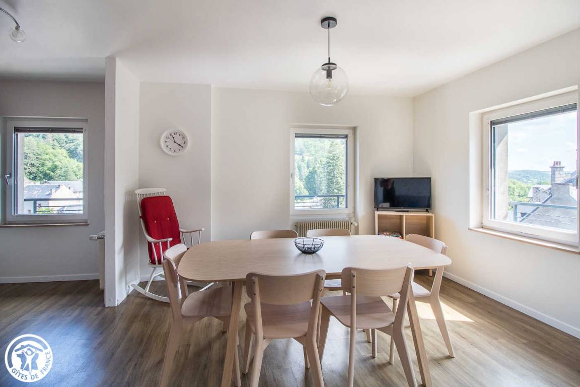 „Gîte accueillant, moderne et pratique. Situation idéale par rapport aux commerces, restaurants et, petit plus, exposition préférentielle sur le château de Murol (Très appréciable lors du feu d'artifice du 14 juillet).“