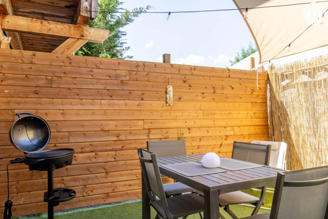 Einstöckiges Cottage mit separatem Zugang, bestehend aus einem Wohn-/Küchenbereich, einem Schlafzimmer (1 Doppelbett 160x200 cm) mit Smart-TV, elektrischen Rollläden, einem Badezimmer (Dusche und WC). 2 möblierte Terrassen (elektrischer Grill). Parkmöglichkeiten im Hof des Anwesens.