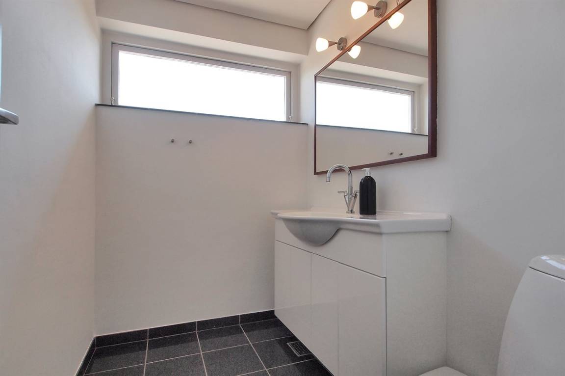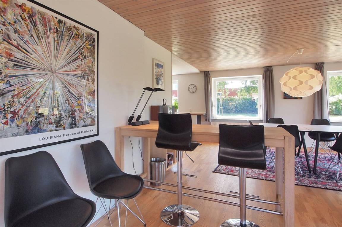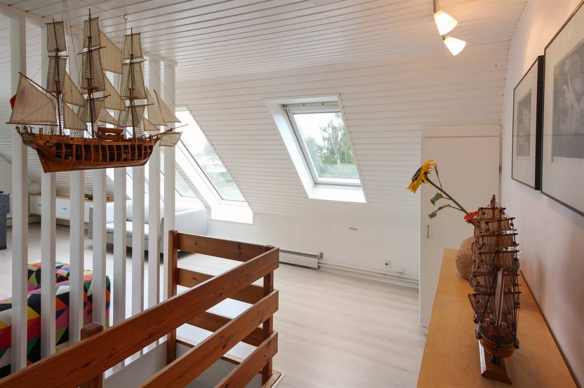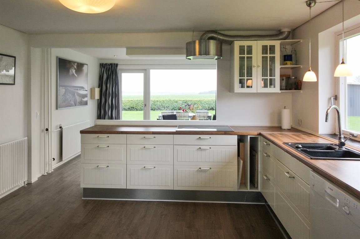 Das Haus ist großzügig und einladend. Im Erdgeschoss findest du eine große, offene Küche, einen Essbereich, ein Schlafzimmer sowie ein Wohnzimmer. Außerdem gibt es ein großes Badezimmer, und im Obergeschoss ein Gäste-WC. Du findest zudem fünf Schlafzimmer, wodurch das Haus optimal für eine große Familie geeignet ist – oder wenn du „zusammen und doch getrennt" wohnen möchtest. Vom Wohnzimmer aus gelangst du auf die große Terrasse und in den feinen Garten, wo die Kinder stundenlang spielen können. Hier findest du auch den Grill, auf dem du köstliche Mahlzeiten zubereiten kannst.