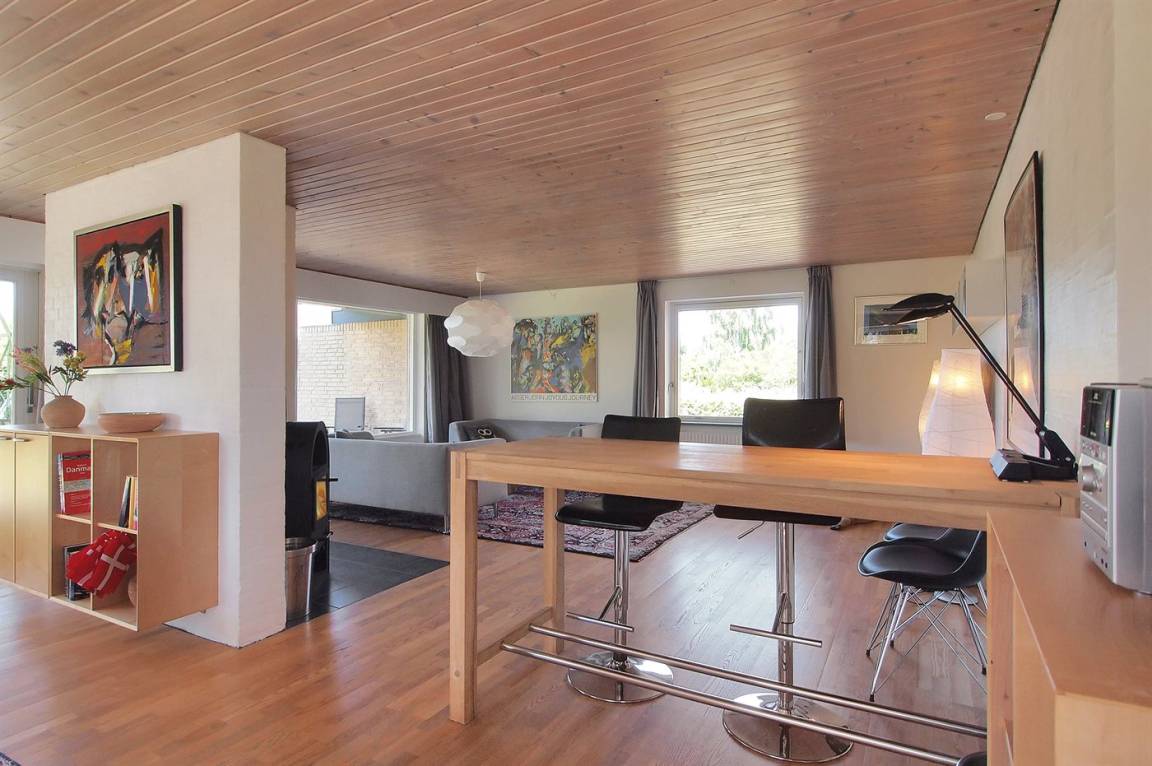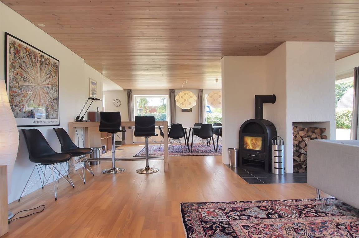 DraußenDie Ferienunterkunft liegt auf einem 1200 m² großen Naturgrundstück. Die Entfernung zum Meer beträgt 5000 m. Die Entfernung zum Fjord beträgt 250 m. Die nächste Einkaufsmöglichkeit liegt 6000 m entfernt. Außerdem gibt es 44 m² überdachte Terrasse. Es steht ein offenes Terrassenareal zur Verfügung. Geräteraum. Schaukel. Trampolin. Rutsche. Es steht ein Grill zur Verfügung. Es steht ein Carport zur Verfügung. Parkplatz auf dem Grundstück.