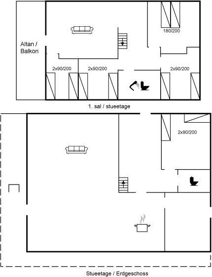 SchlafverhältnisseDie Schlafplätze verteilen sich auf 5 Schlafräume. 2 Schlafplätze in einem Doppelbett. 8 Schlafplätze in Einzelbetten. Ferner steht ein Kinderbett zur Verfügung.