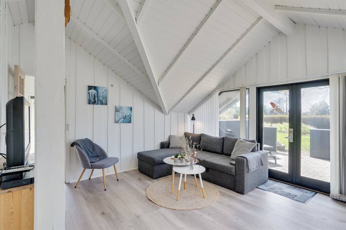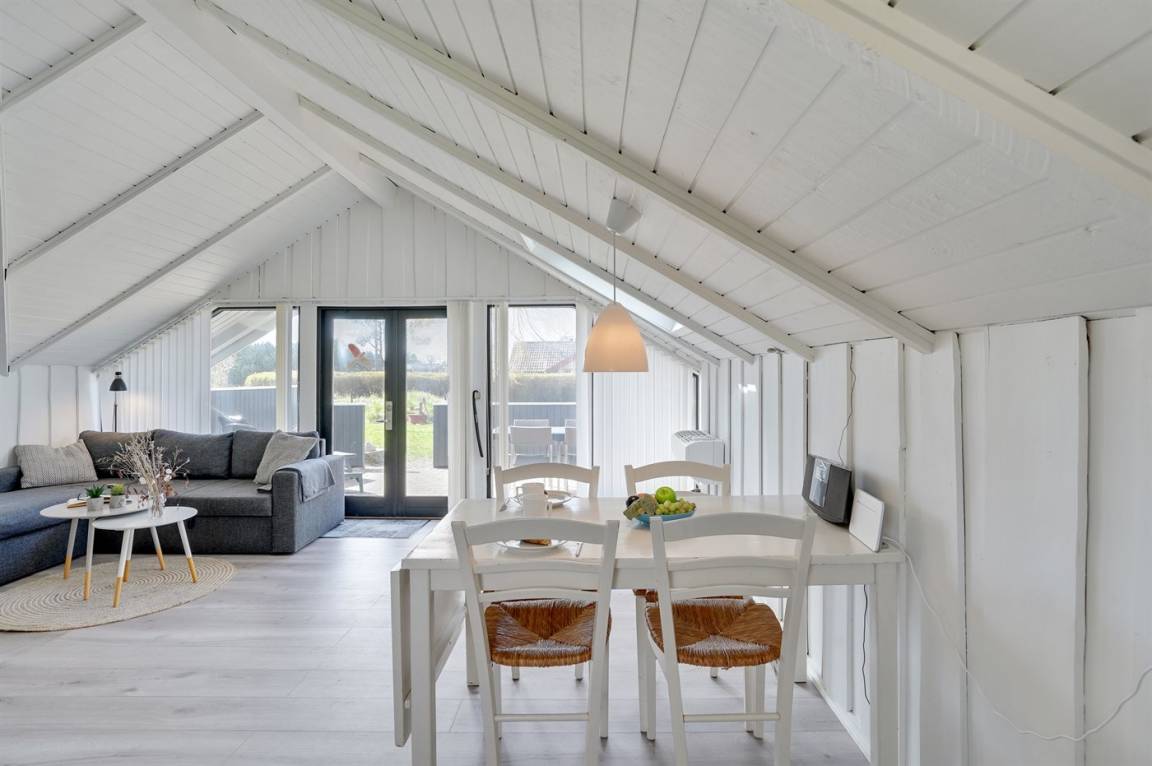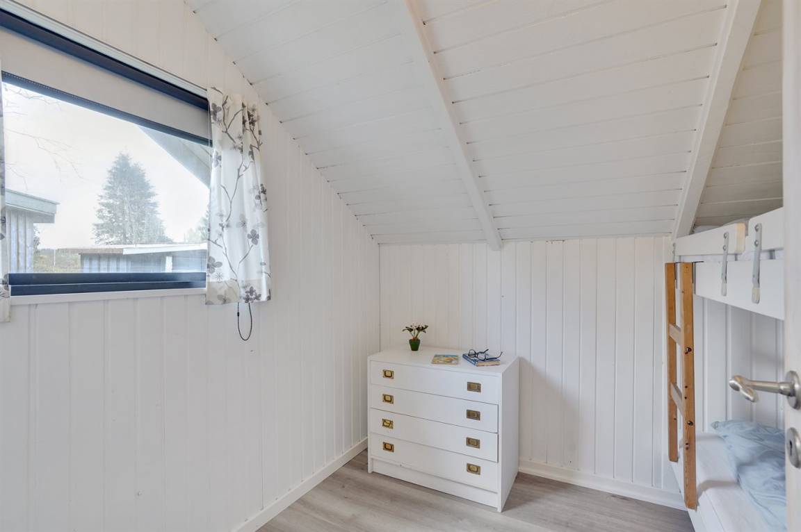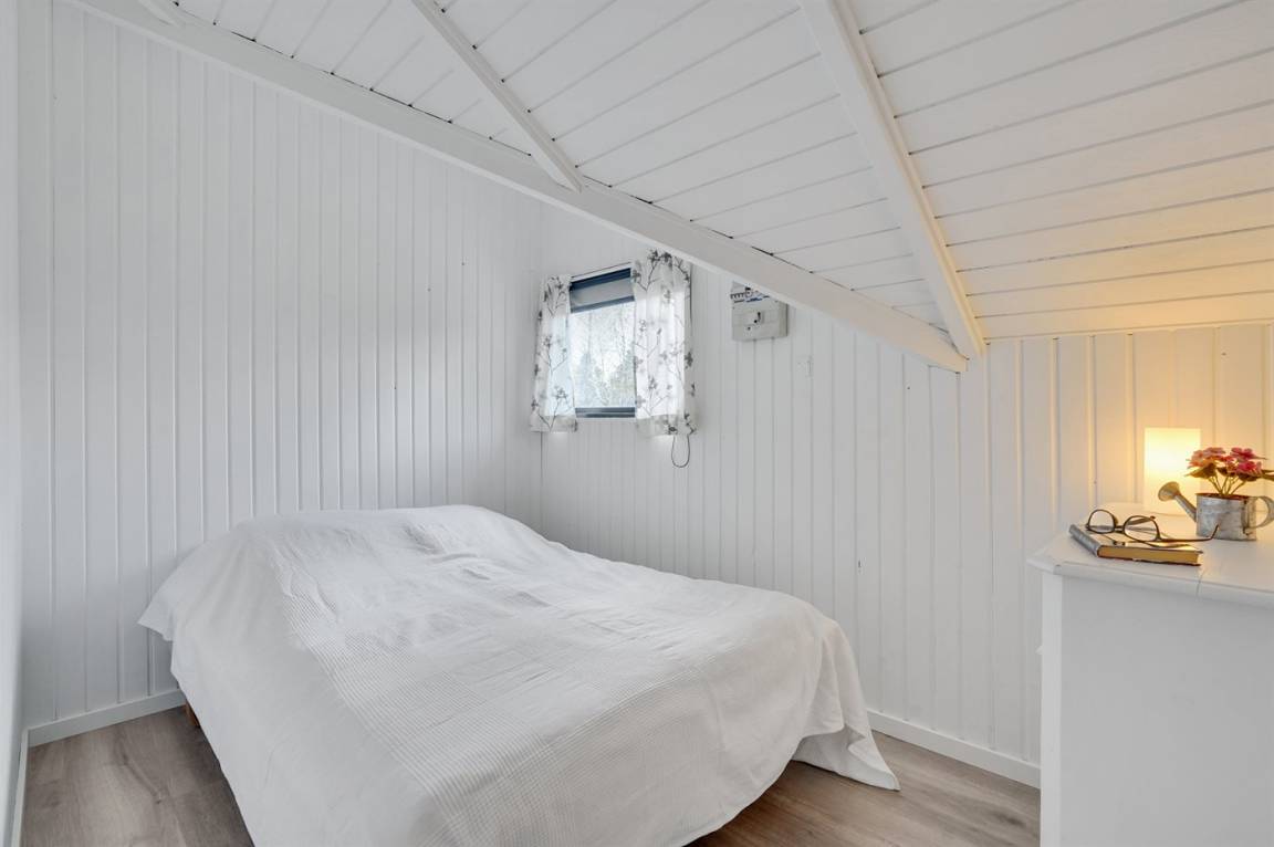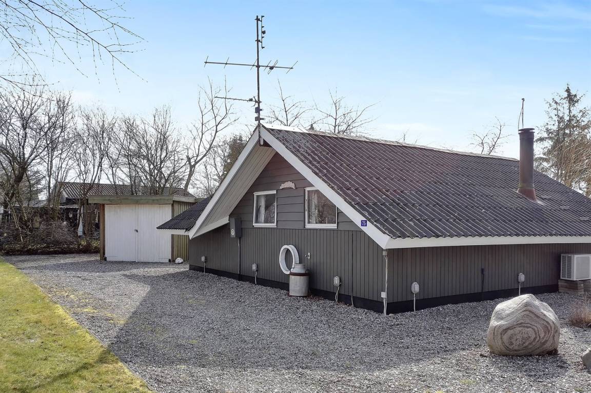 Ein gepflegtes Ferienhaus auf einem von Büschen und Bäumen umgebenen Grundstück gelegen – nicht weit von einem schönen Badestrand entfernt.