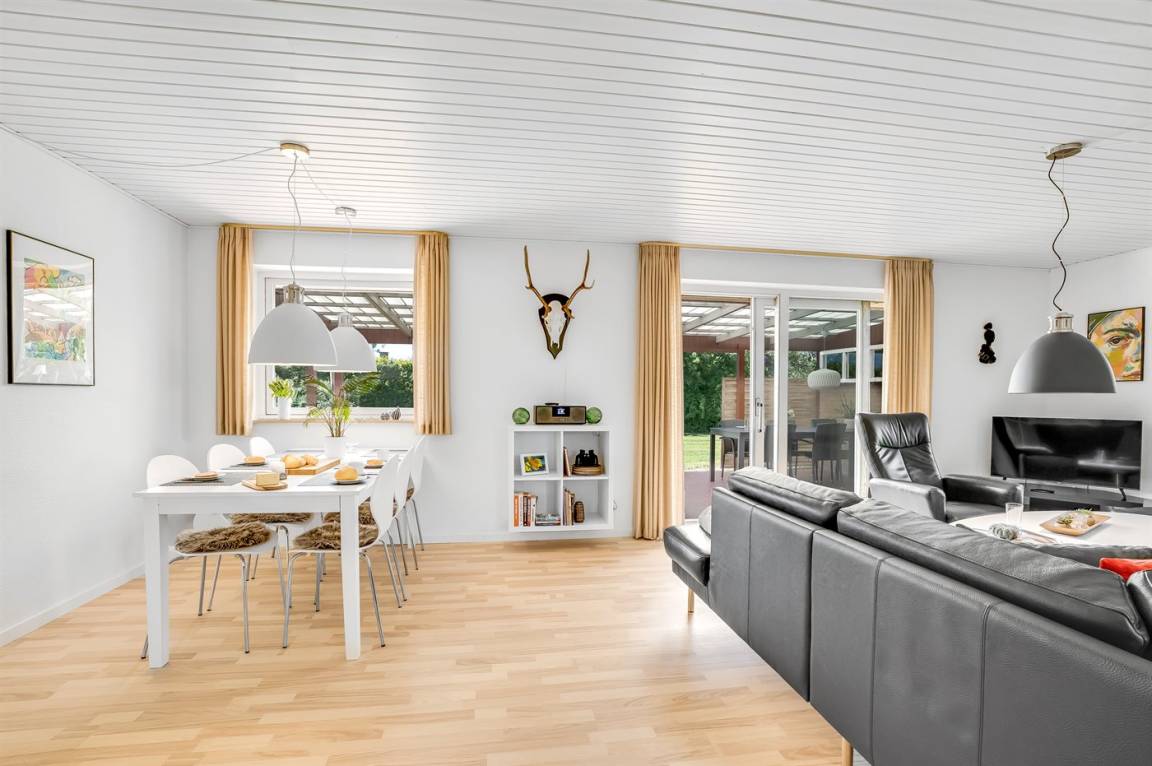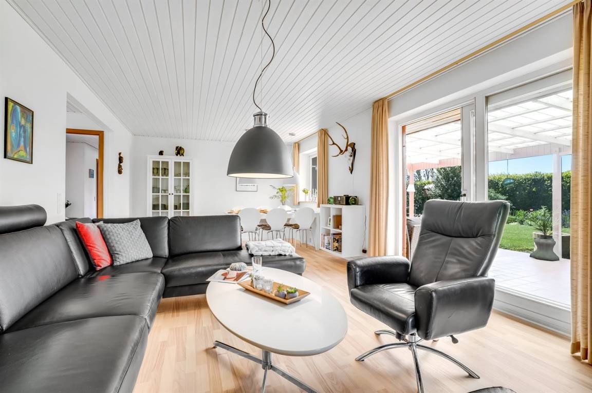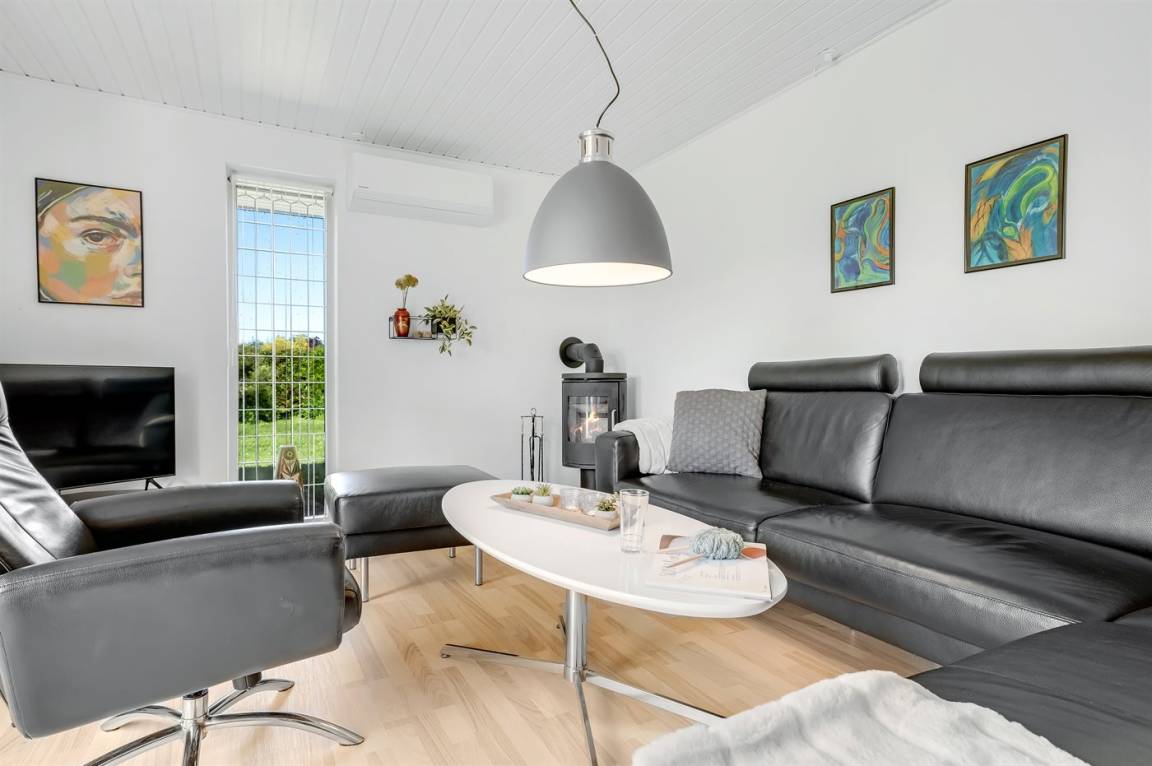 DraußenDie Ferienunterkunft liegt auf einem 1200 m² großen Gartengrundstück. Die Entfernung zum Meer beträgt 3000 m. Die Entfernung zum Fjord beträgt 150 m. Die nächste Einkaufsmöglichkeit liegt 9000 m entfernt. Es steht ein offenes Terrassenareal zur Verfügung. Außerdem gibt es überdachte Terrasse. Die Entfernung zu einem Spielplatz beträgt 700 m.Lagerfeuerstelle. Es steht ein Grill zur Verfügung.Es steht eine Garage zur Verfügung. Parkplatz auf dem Grundstück.