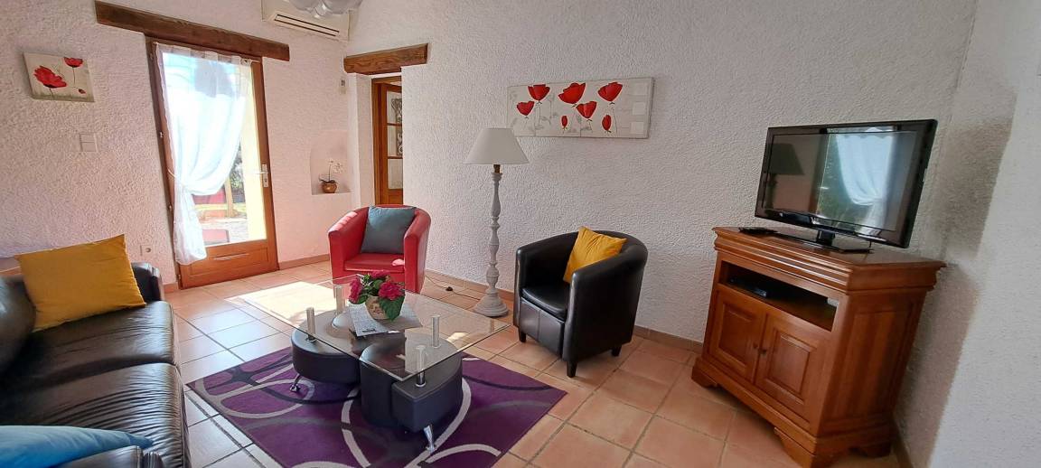 R.D.C: Wohnzimmer mit TV/DVB-t, DVD, direkten Zugang zu Terrasse und Garten. Küche: Kühlschrank mit Gefrierfach, MO, LL und LV. Obergeschoss: 2 Schlafzimmer (2 Betten 2, 1 Bett 1 Pers., Babys, Internet). SDE. WC-Indep. Tierheim-Auto. Clim umkehrbar zzgl. Heizung. Kurtaxe: 0.90€/J/pers. www.gites-narbonne.com.