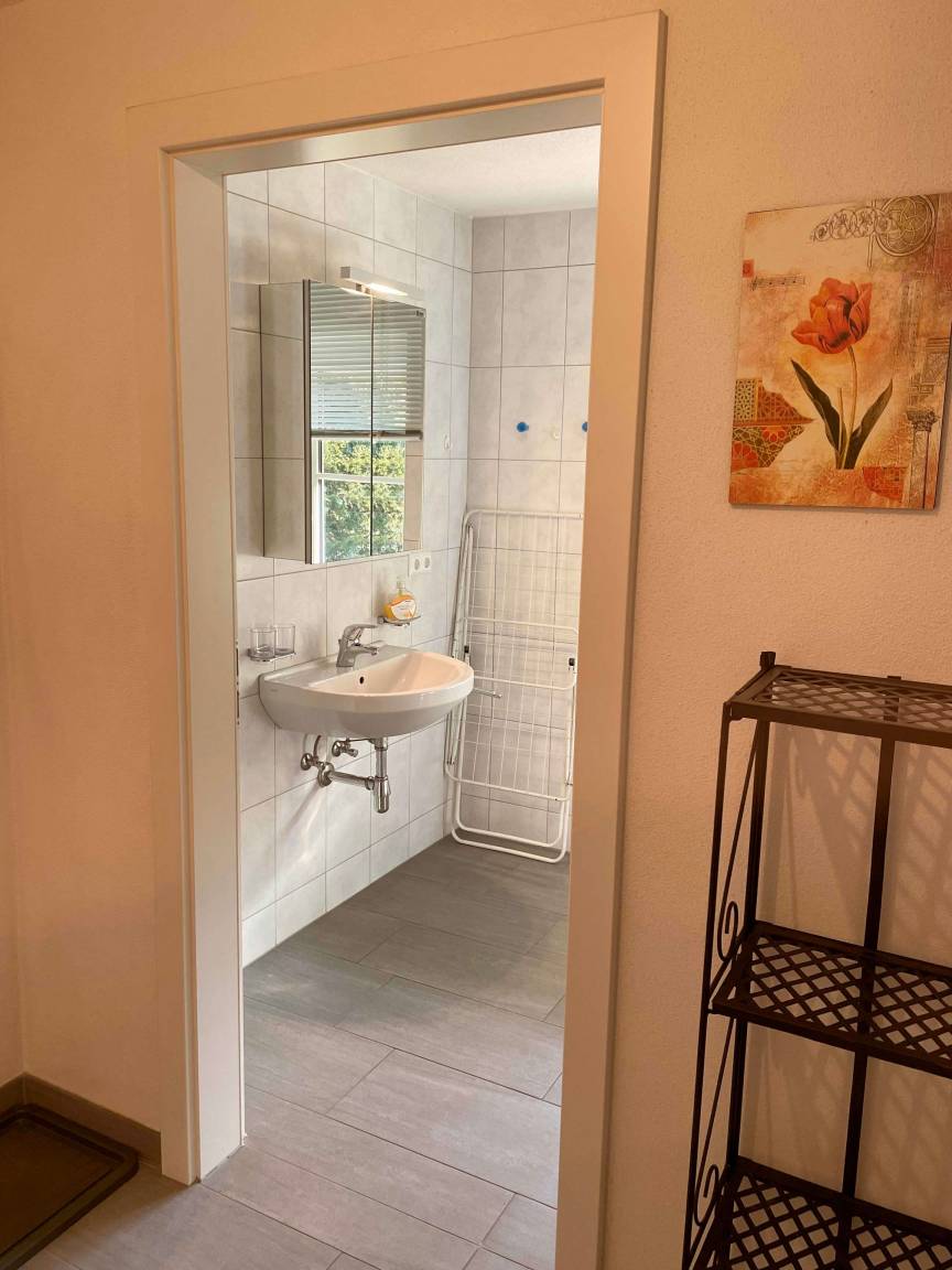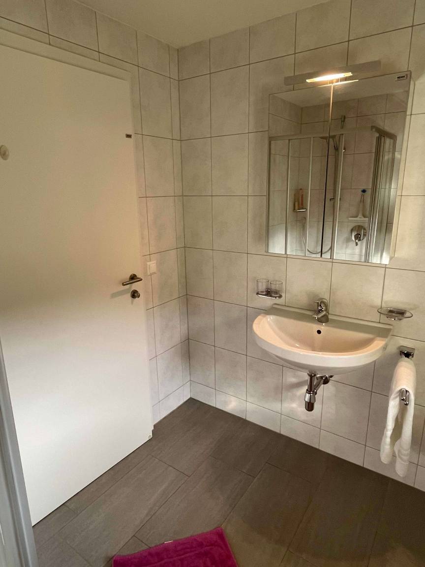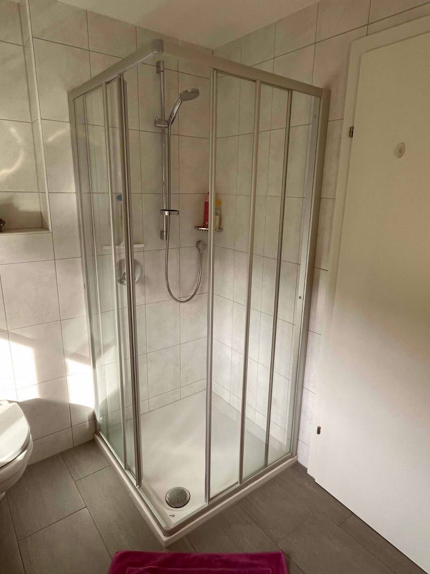 Ein Bad mit Dusche vervollständigen diese wunderschöne Wohnung.