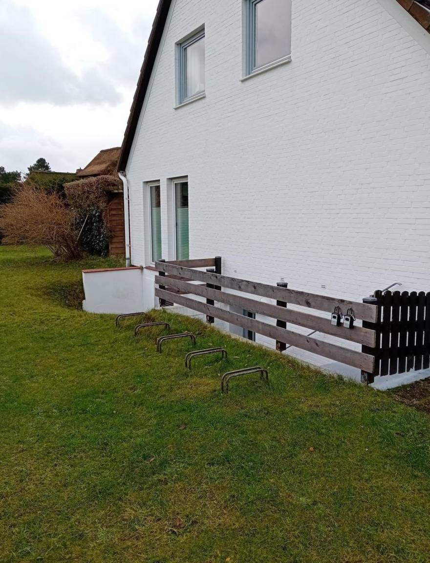 Die Ferienwohnung besticht durch ihren großzügigen Außenbereich, der Teil eines ca. 2.000 m² großen Gemeinschaftsgartens ist. Dieser Garten bietet reichlich Platz zum Spielen und Verweilen und lädt dazu ein, die Ruhe und die Schönheit der Amrumer Natur zu genießen. Die Lage der Wohnung ist äußerst vorteilhaft: Direkt in der Nähe des Nebeler Badestrandes und gut erreichbar von der Ortsmitte. In unmittelbarer Umgebung befinden sich zahlreiche Einkaufsmöglichkeiten, Restaurants und die Bushaltestelle, die den Zugang zu den Attraktionen der Region erleichtern. Parkmöglichkeiten sind ebenfalls gegeben, da mehrere PKW-Stellplätze direkt am Haus zur Verfügung stehen. Diese Kombination aus Ruhe und zentraler Lage macht den Außenbereich der Ferienwohnung zu einem idealen Ort für erholsame Stunden im Freien.