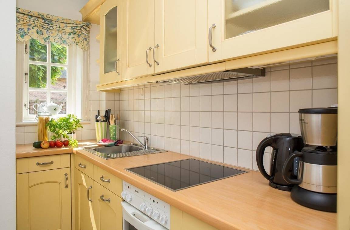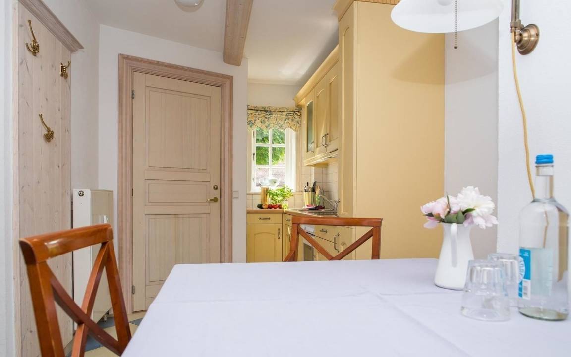 Die helle und freundliche Küche lädt zum gemeinsamen Kochen ein. Sie ist ausgestattet mit einem Herd mit Cerankochfeld, einem Backofen, einer Spülmaschine und einem Kühlschrank. Zusätzliche Annehmlichkeiten wie eine Kaffeemaschine, ein Toaster sowie eine Vielzahl an Küchenutensilien stehen zur Verfügung, um den Aufenthalt so angenehm wie möglich zu gestalten.