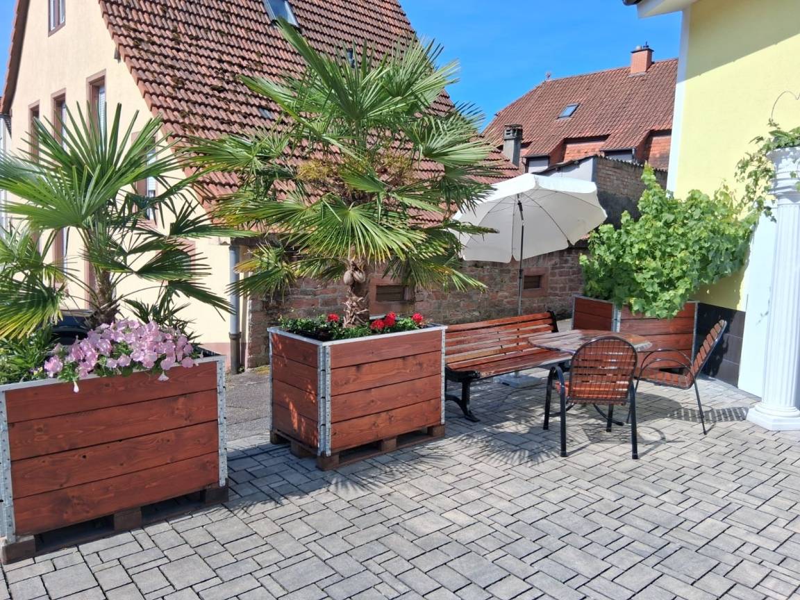 Wir haben einen Stauraum für Ihr Gepäck, in diesem Stauraum befindet Sie auch ein Bügeleisen, ein Bügelbrett, Staubsauger, Besen und Putzutensilien. Im gemütlichen Hof befindet sich eine gemütliche Sitzgruppe außerdem steht Ihnen ein Parkplatz zur Verfügung. Profitieren von der sehr guten Infrastruktur im urgemütlichen und gepflegten Neckargemünd (Busse, Bahn, Schiffe, Restaurants, Ärzte, Geschäfte).