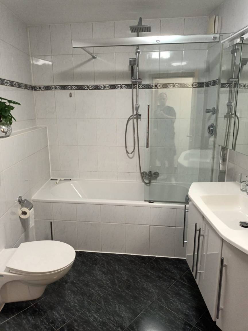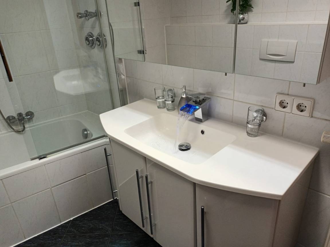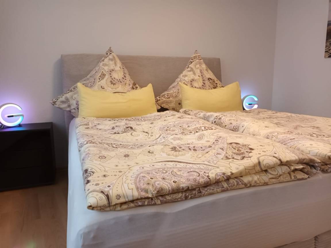 Die schöne 57 m² Wohnung ist modern und gemütlich eingerichtet. Im großzügigen Eingangsbereich befindet sich die Garderobe. Im hellen Wohnzimmer ist eine Schlafcouch 1,20 m x 2,40 m, eine Schrankwand mit Flachbild-Kabel-TV mit Netflix. Das Schlafzimmer verfügt über ein Boxspringbett 1,80 m x 2,00 inkl. Bettwäsche, sowie über einen großen Kleiderschrank, zwei Nachttische und ein Tresor. Die neue Einbauküche bietet alles, was Sie zum Kochen benötigen: sie verfügt über einen Backofen, Herd, Spülmaschine und Kühlschrank mit Gefrierfach. Die Küche ist voll ausgestattet mit: Geschirr und Besteck, Gläsern, Töpfen und Pfannen, Schüsseln und Geschirrtüchern. Eine Senseo-Kaffeemaschine für Taps, eine Filterkaffeemaschine, ein Wasserkocher. Ein Rührgerät und eine Mikrowelle, Heißluftfritteuse stehen ebenfalls zu Ihrer Nutzung bereit. Der schöne Esstisch bietet ebenfalls Platz für 4 Personen. Das Badezimmer ist mit einer Badewanne/Dusche, WC und einem großzügigen Waschbecken mit Spiegel- und Unterschrank für Ihre Utensilien ausgestattet. Wir halten außerdem einen Fön und kuschelige Dusch- und Handtücher für Sie bereit.