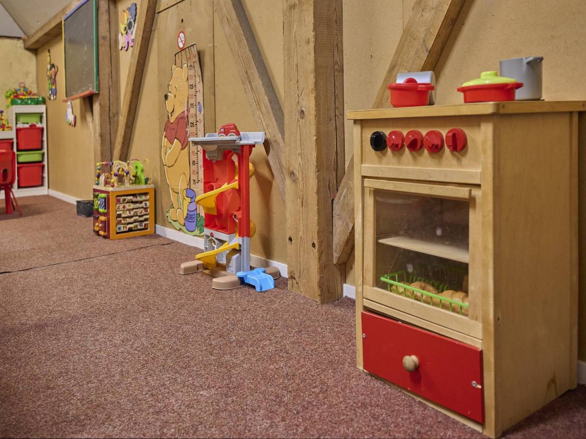 und Badezimmer, und im ersten Stock ein zusätzliches Waschbecken. Das Haus ist komfortabel und kinderfreundlich eingerichtet und bietet eine gut ausgestattete Wohnküche, ein Spielzimmer, eine Terrasse und verschiedene Kindereinrichtungen wie Kinderbett, -stuhl und -laufstall. Kurzum, ein perfekter Ort für Entspannung und Unterhaltung für Jung und Alt!
