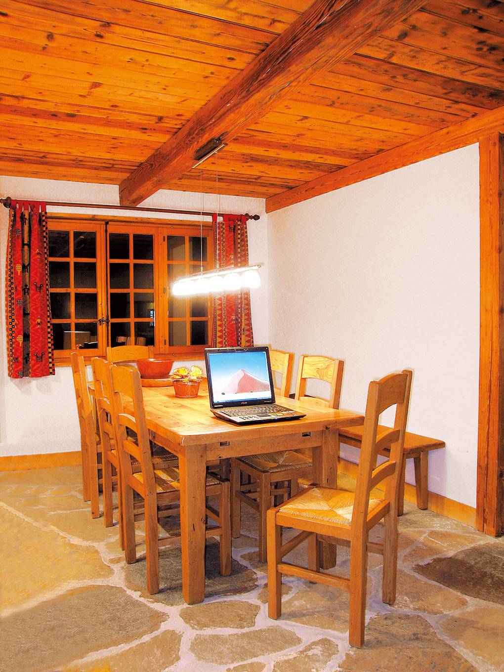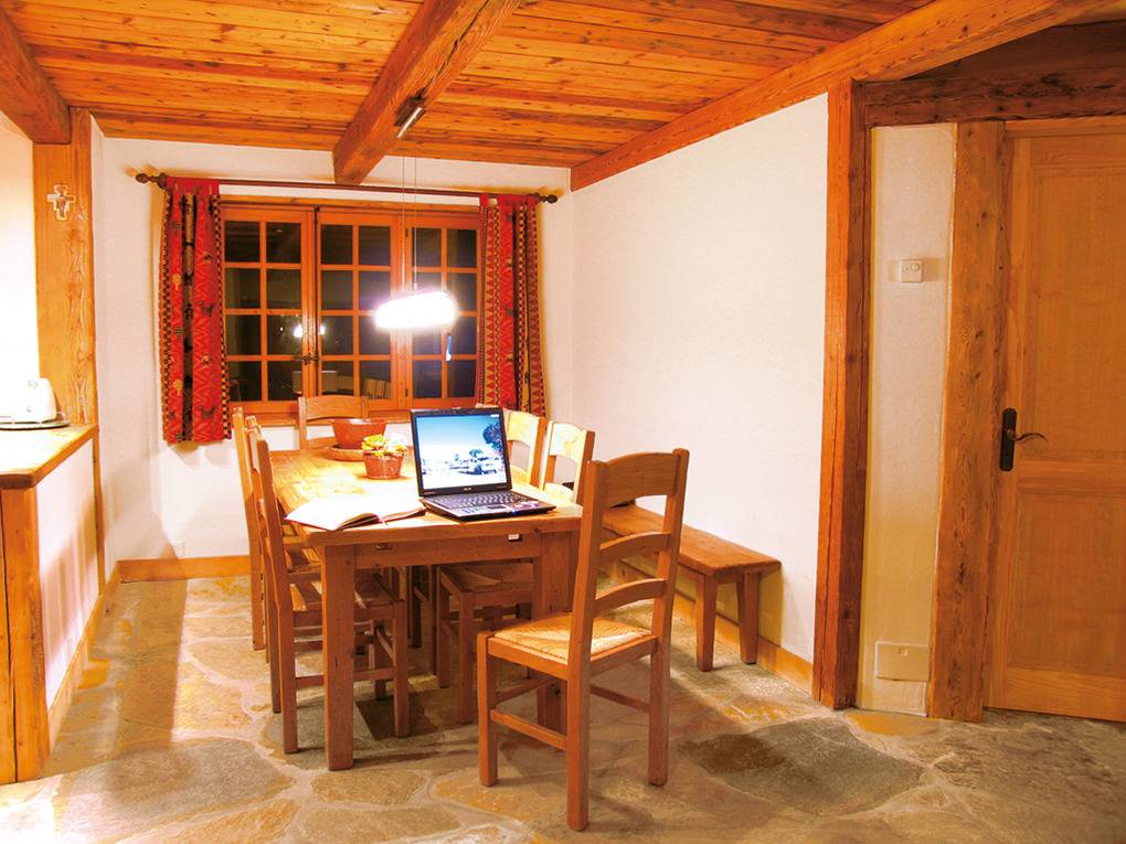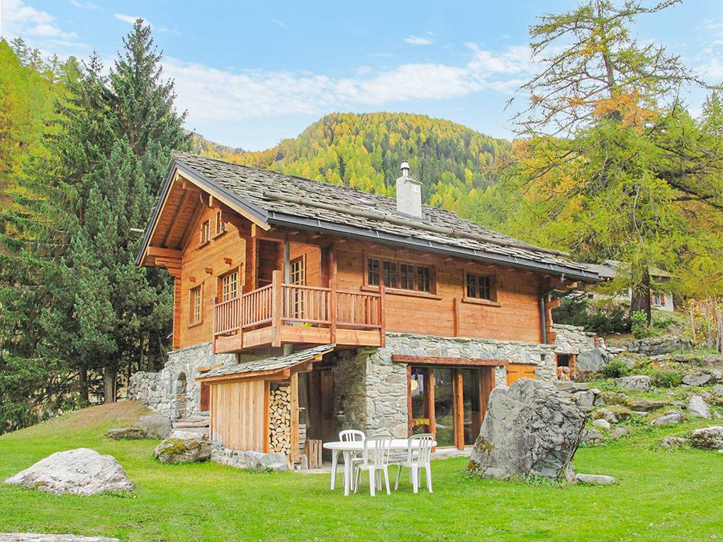 Haus: Sehr schönes Walliser Chalet, mit viel Liebe zum Detail umgebaut und renoviert zu einem komfortablen Ferienhaus mit Kamin- und Pizzaofen. 7-Zimmerhaus mit 140 qm Wohnfläche über 3 Etagen. 2 Fewos, die zusammen vermietet werden, verbunden durch eine Treppe im Haus. Gemeinsames Essen im großen Wohnraum 1. Etage. Gemütliches, rustikales Flair durch Steinplattenboden und Holzvertäfelungen im Wohnbereich. Geschmackvolle Einrichtung. Kostenloser Internetzugang über W-Lan. Heizung des Chalets durch E-Heizung, Kaminofen. Warmwasser über 600 l E-Boiler. Nichtraucherhaus. Schöne Terrasse mit Sitz- und Liegemöbeln, Gas-Grill, Grill-Kamin. Kleiner Garten am angrenzenden Bach. 6 Pkw-Stellplätze vorhanden.